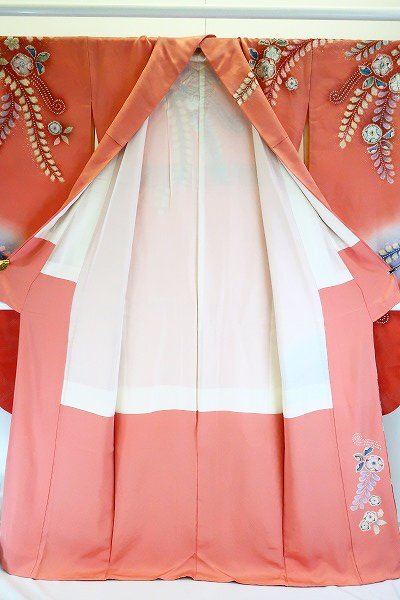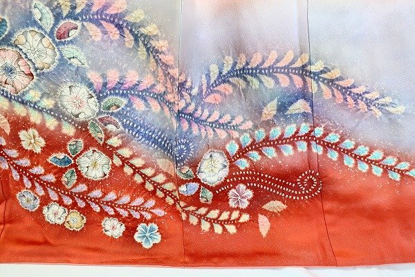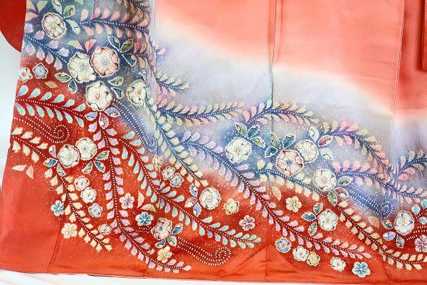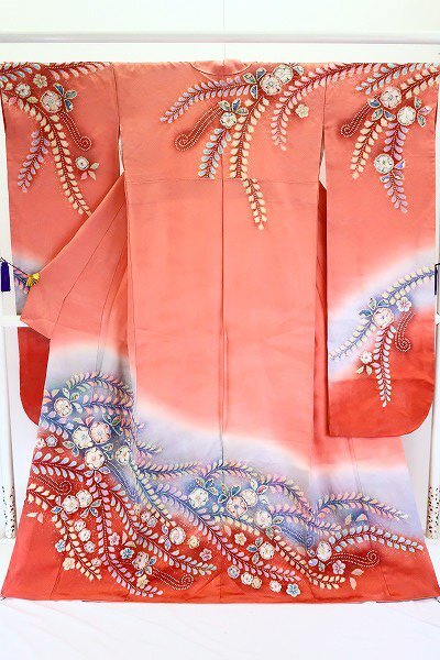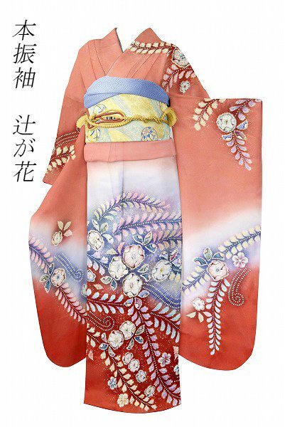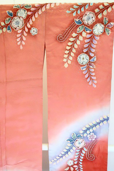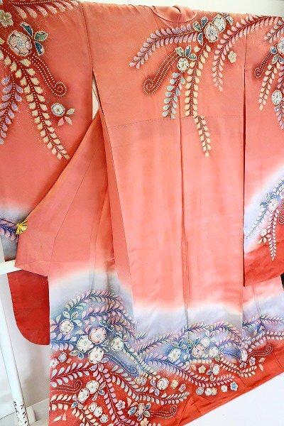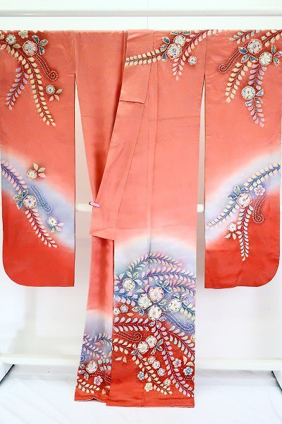 | 【送料無料】美品 振袖 銀通し 辻が花 サーモンピンク ぼかし トールサイズ 身丈175cm フォーマル 成人式 結婚式 正絹 仕立上がり m-7416 |