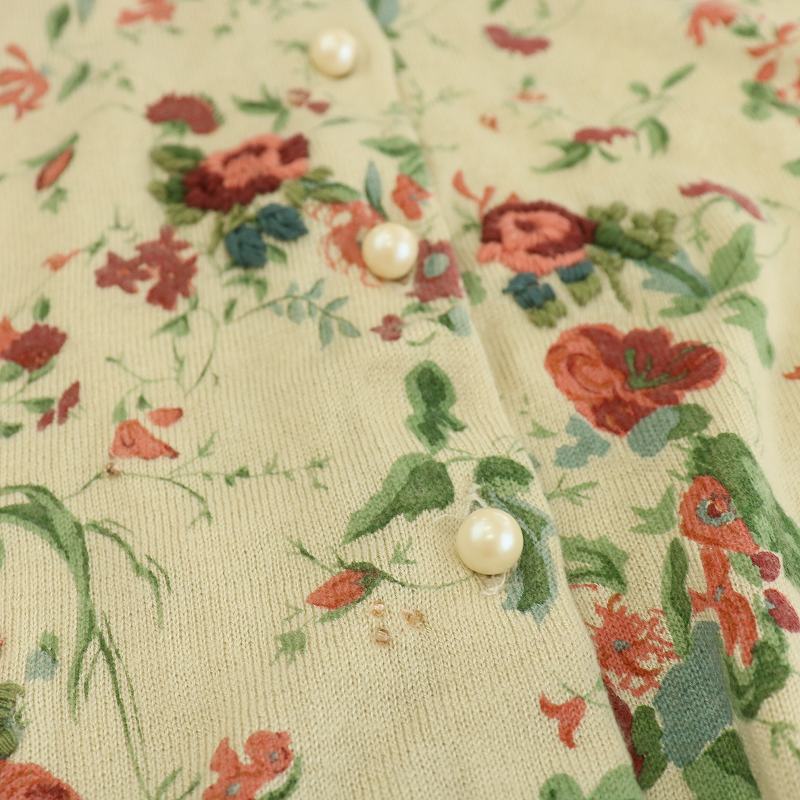 ロイスクレヨン Lois CRAYON カーディガン ニット 花柄 長袖 M ベージュ 16003508-7 /NQ レディース