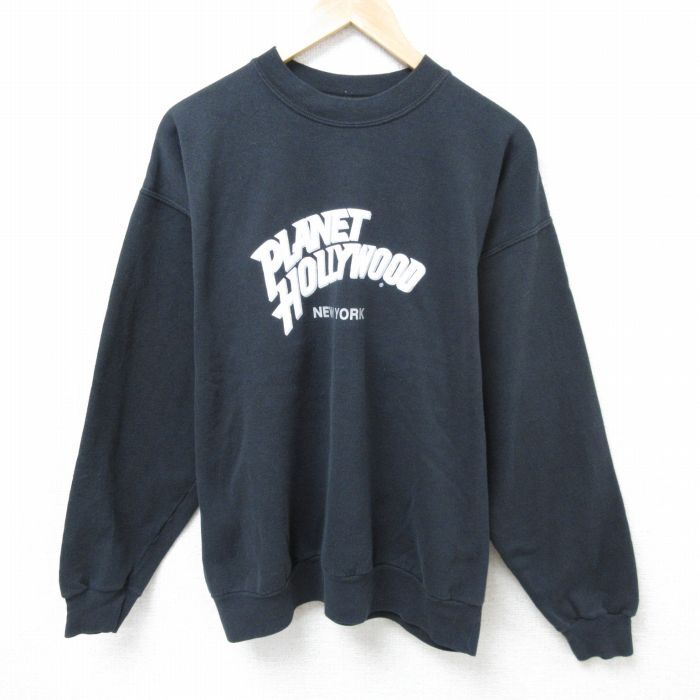 【商品名】 L★古着 ヘインズ Hanes 長袖 スウェット メンズ 00年代 00s プラネットハリウッド クルーネック 黒