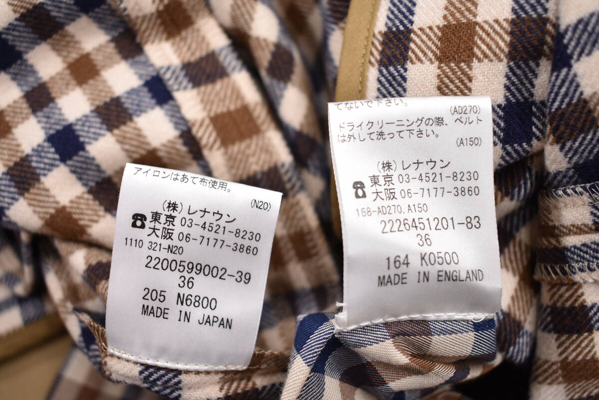 サイズ表記36、素材綿63%ポリエステル37%英国製、ライナー日本製