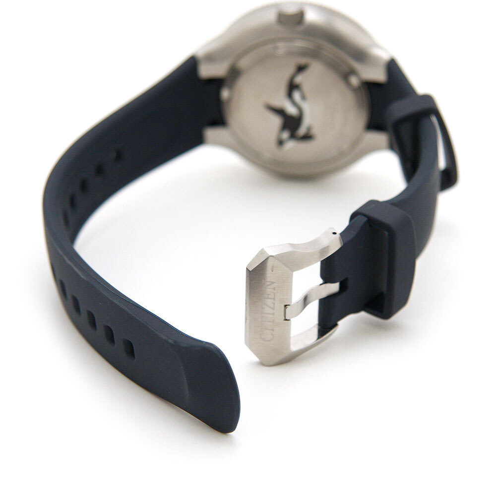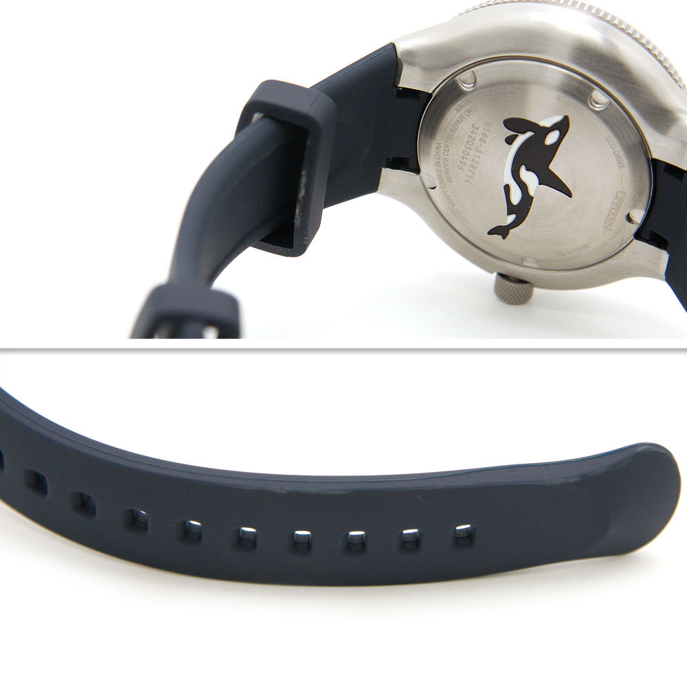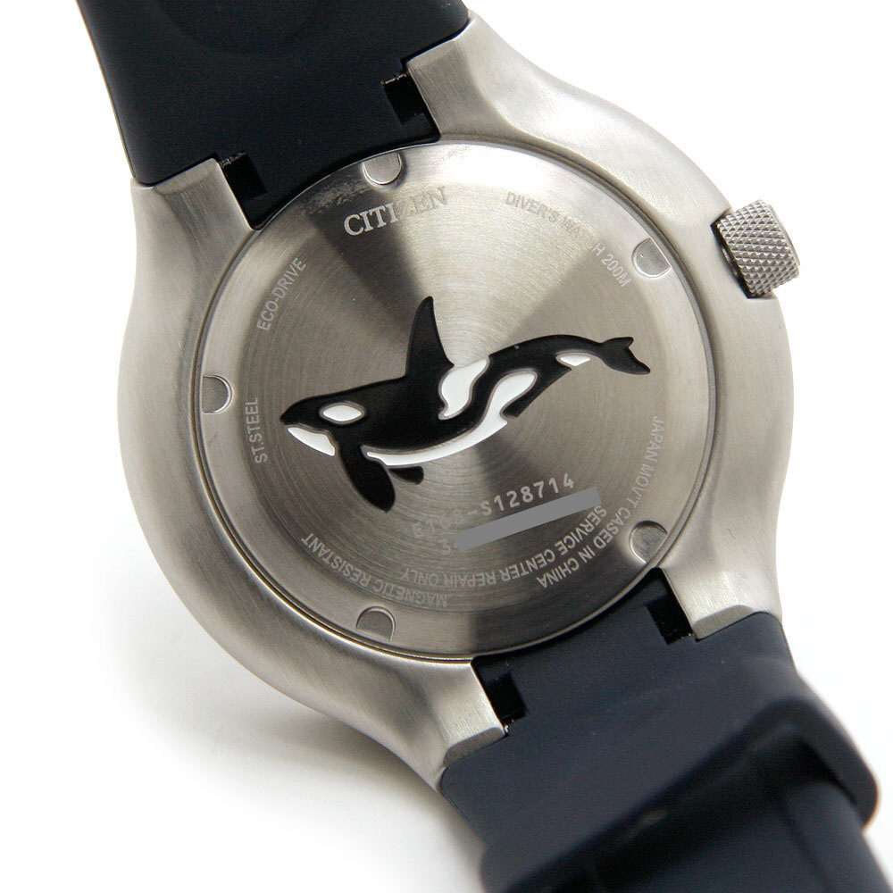 裏蓋に雄大なオルカが泳ぐ姿のマーキング