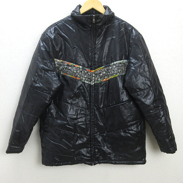 C■ミヤビムスビ/雅結 和柄切り替え 中綿ジャケットJKT【XL】黒/MENS■111【中古】■