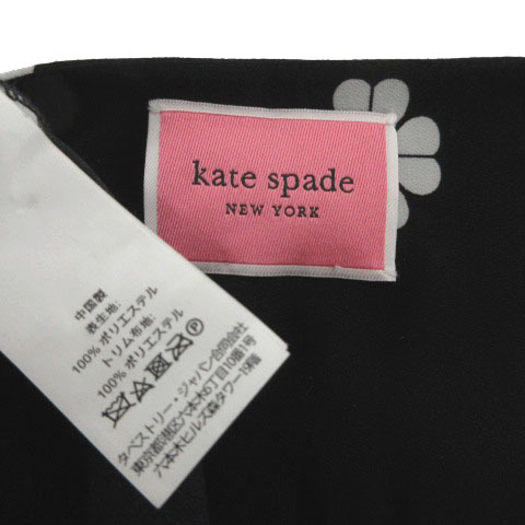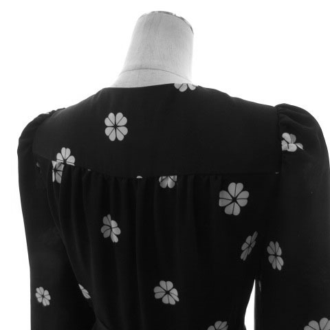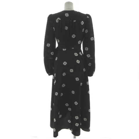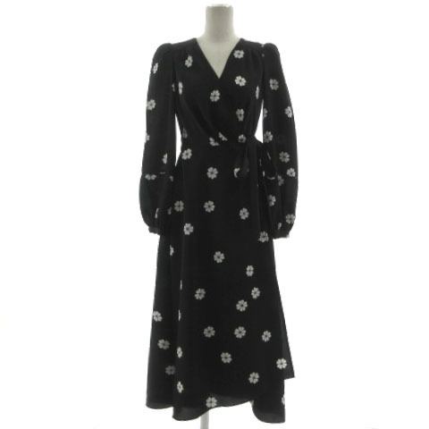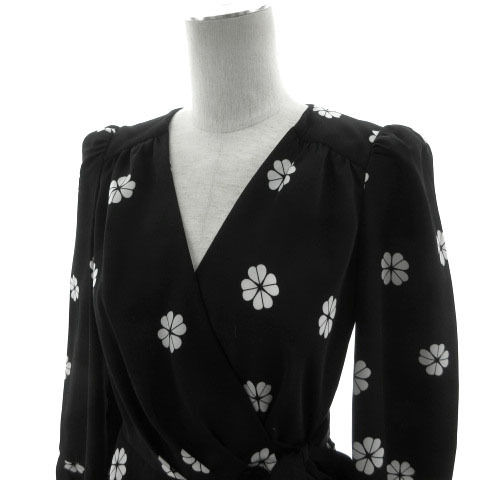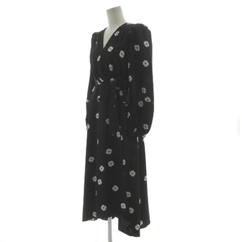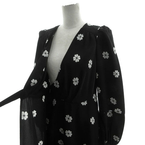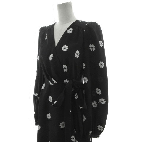 ケイトスペード KATE SPADE NEW YORK フラワーラップワンピース カシュクール 長袖 ロング丈 リボンベルト ブラック 黒 ホワイト 白 0