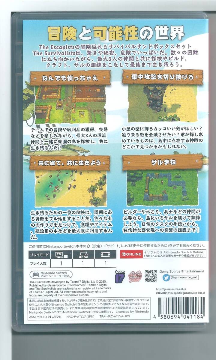 ●JANコード4580694041184 t1 ☆Switch The Survivalists ザ サバイバリスト ●商品の状態 ソフトは使用感少なく状態良好ですが、ケースにスレ・イタミがあります。説明書ははじめから付属していません。 |