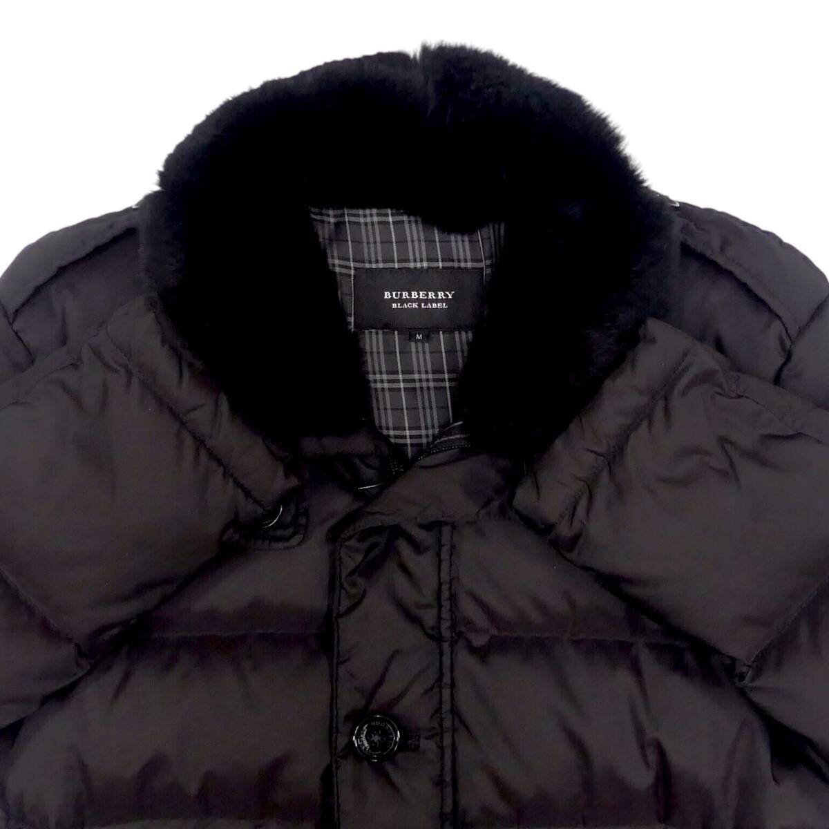 即決★BURBERRY BLACK LABEL★メンズ M 廃版 ダウンジャケット バーバリーブラックレーベル M 黒 ラビットファー ロング