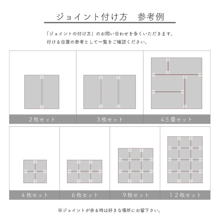 | 表地=い草(九州産)※双目織 中材=ヒバ硬綿15mm 裏=連結用ジョイント付 ヘリ=PP、PE |