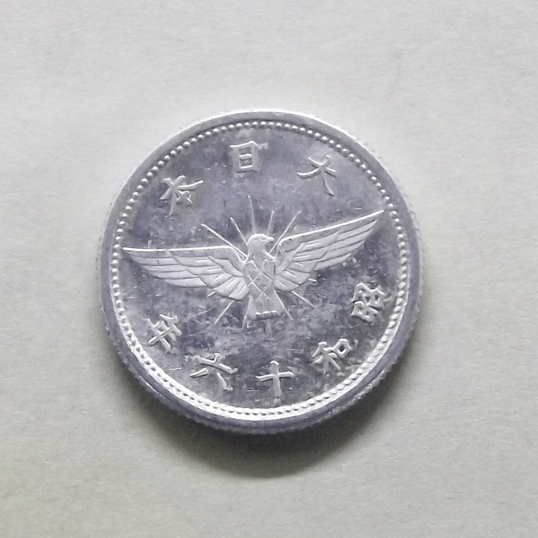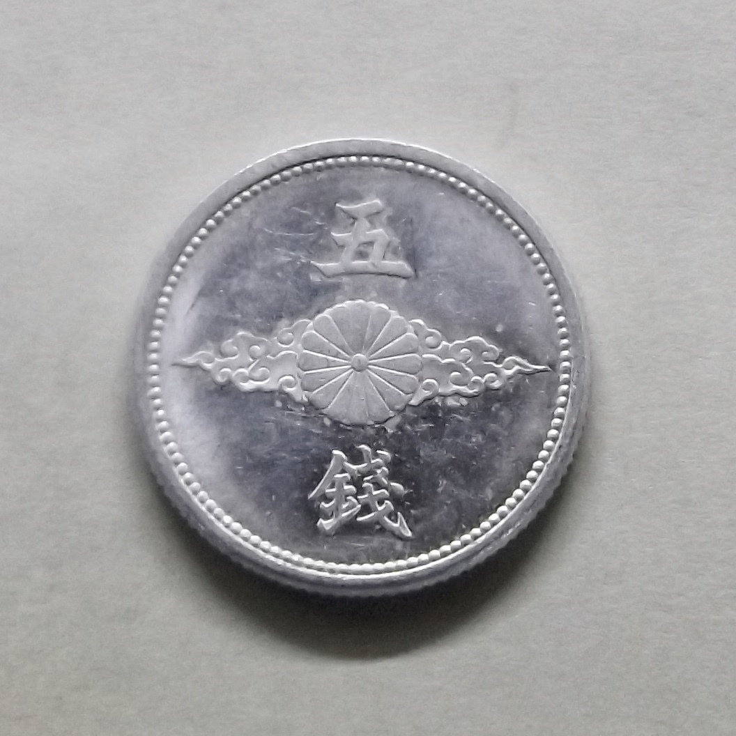5銭アルミ貨  昭和16年 送料無料 (20217)硬貨 古銭 アンティーク 日本 貨幣 近代 コレクション コイン。