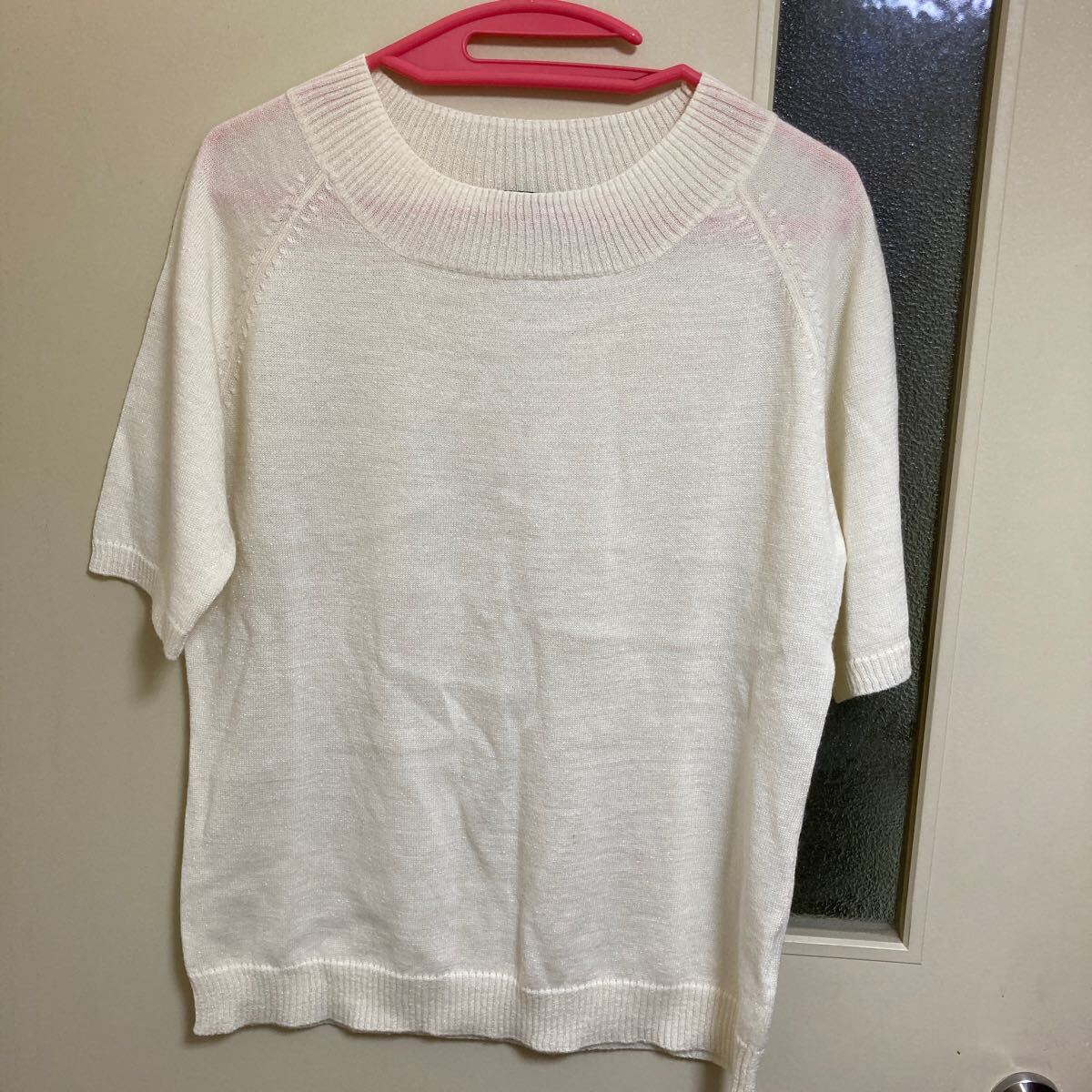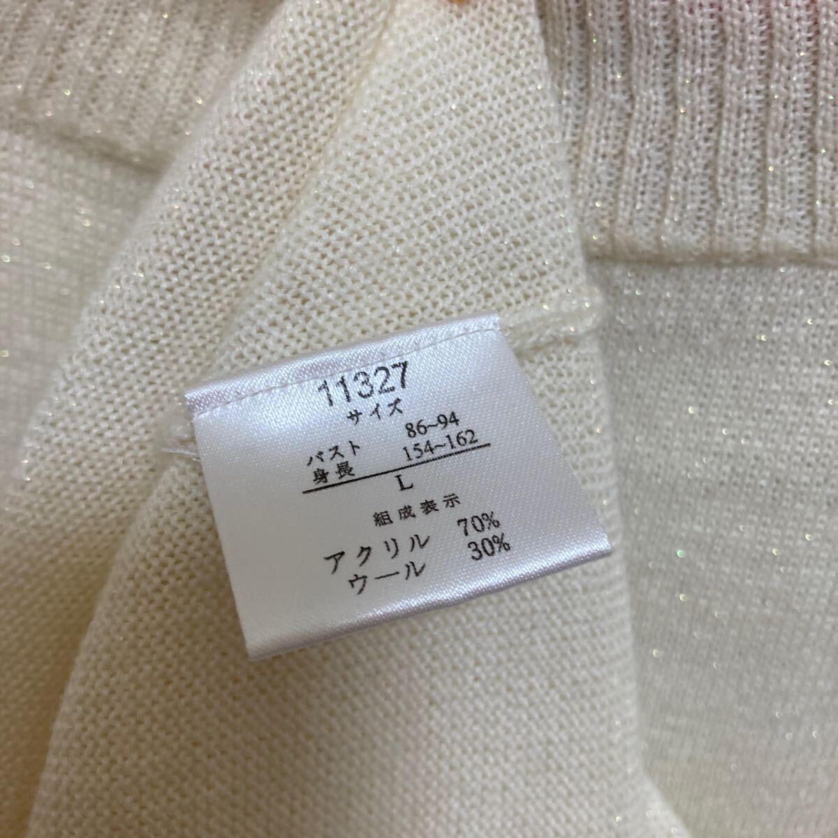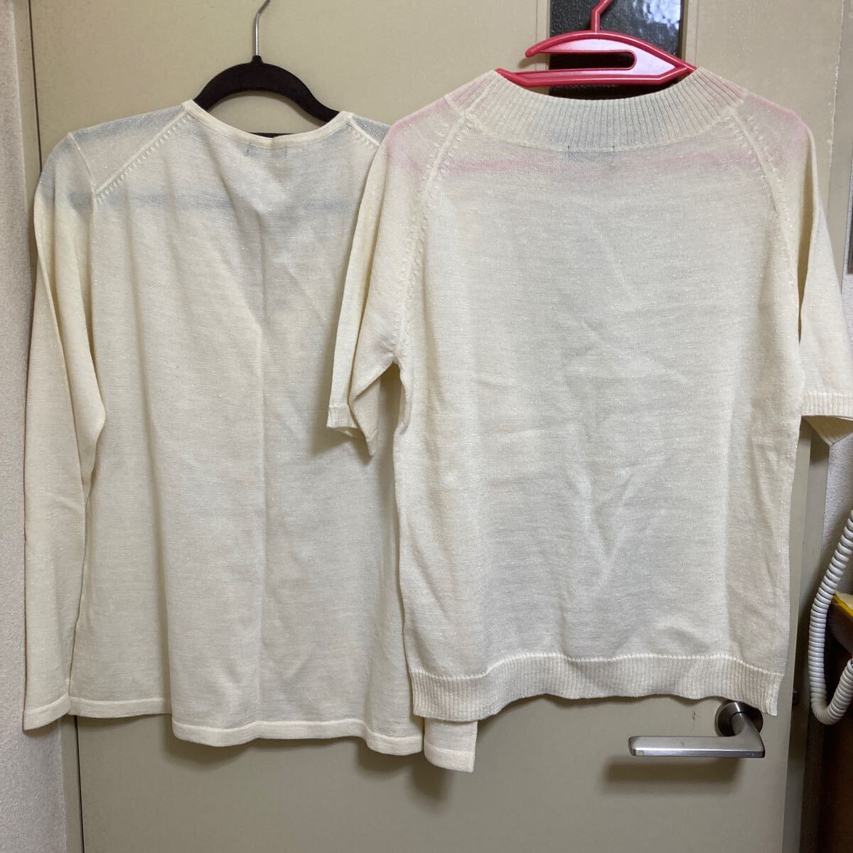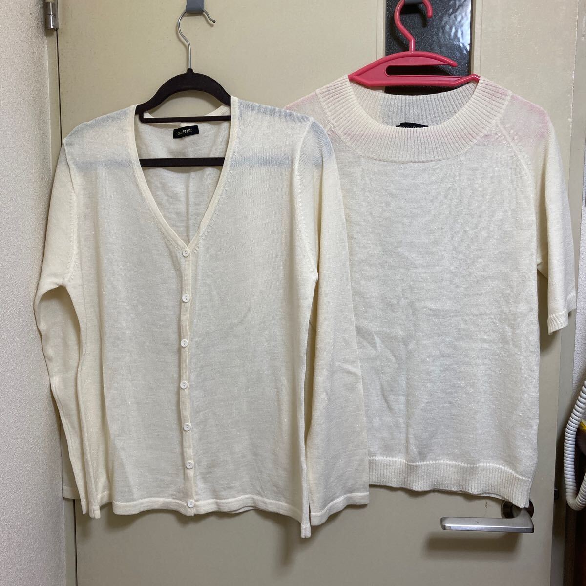 ちょっとラメの入ったアイボリーのニットアンサンブルです