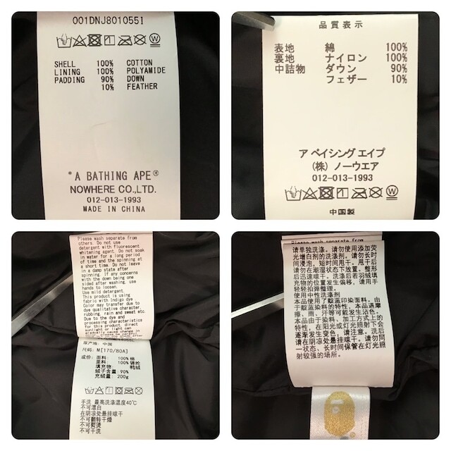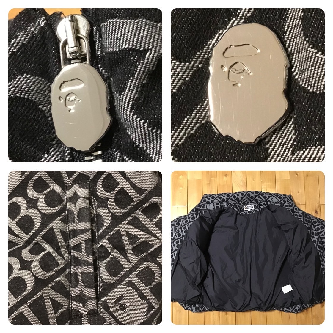 a bathing ape デニム モノグラム ダウンジャケット ブラック Mサイズ です★