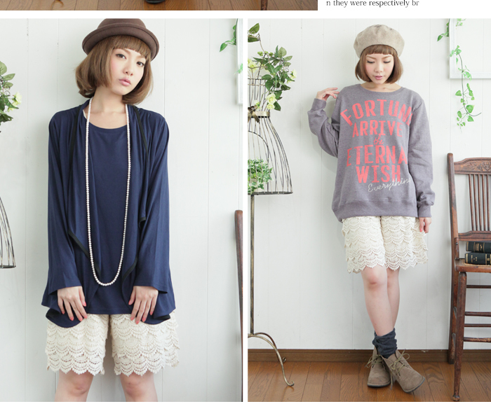 素肌に気持ちいいコットンレース、トップスにブラウスなどを合わせてガーリーに…☆