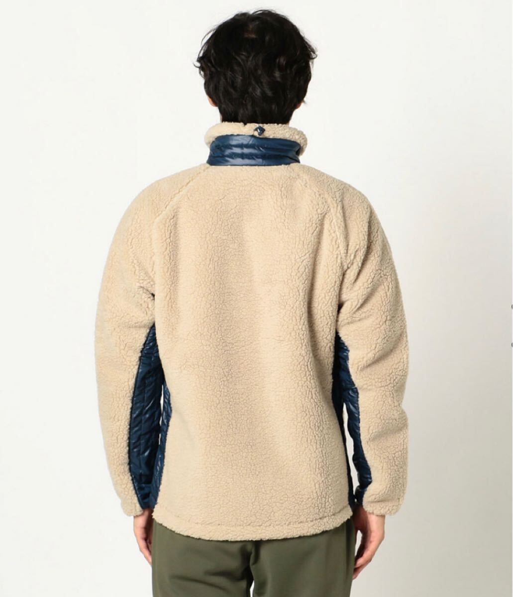 冷たい風から身体を守るボアフリースジャケット。通常のボアフリースと違い、防風膜を挟んでいるので、寒風をシャットアウト。風を防ぎつつもウェア内にこもった蒸れを放出する透湿性もあわせもっています。さらに少量の化繊綿も封入されているので、見た目以上の保温効果があります。防風、防寒性によってアウターとしても使えるので、まだそれほど冷え込まない秋には単体で、冬にはジャケットの下の中間着として活躍します。肩の立体裁断と腕下のマチにより、腕の動きもスムーズに。ボアとパネルの切り替えしデザインがアウトドアシーンにマッチし