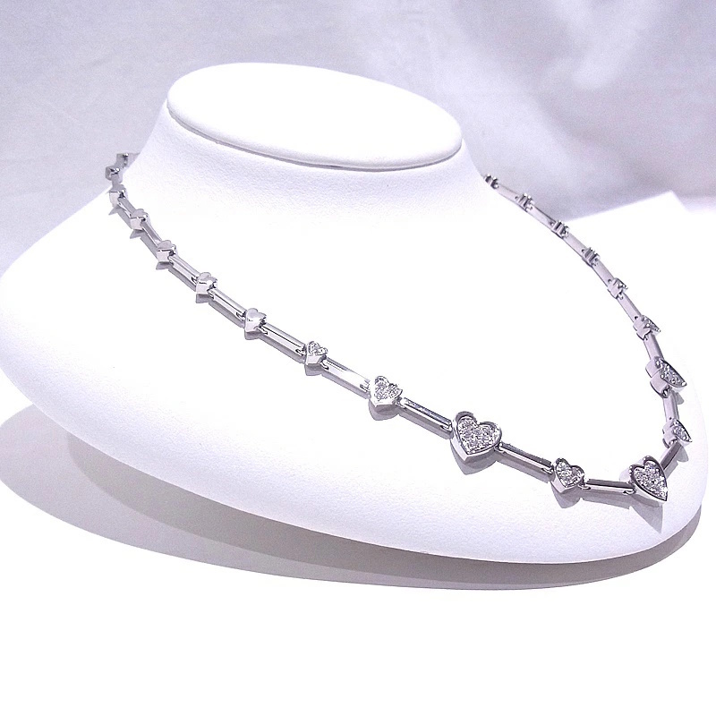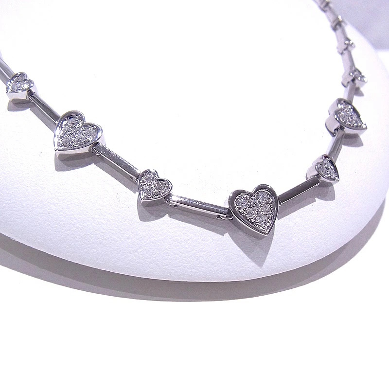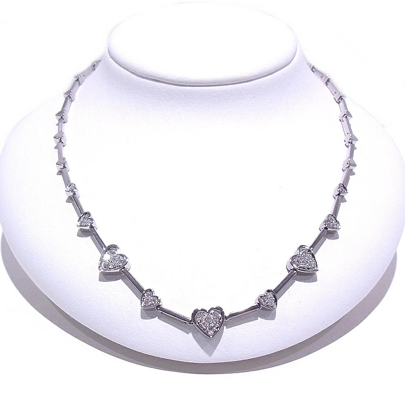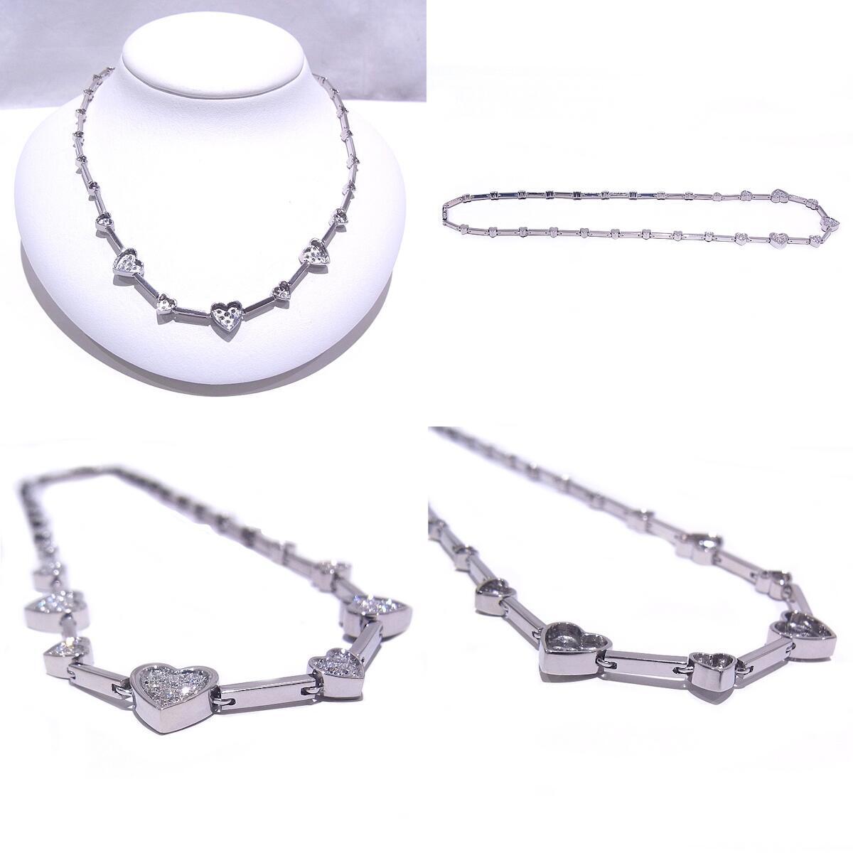 詳細・備考 | ■ダイヤモンドを0.78ct使用したハートデザインネックレスが入荷致しました。可愛らしいデザインです。プレゼントにもおすすめです。 ■新品仕上げ済みですが、店頭展示による微細な傷や、仕上げで取りきれなかった傷が残っている場合がございますが、その点はご了承ください。 ※750刻印が仕上げにより薄くなっております。写真にてご確認お願い致します。 |