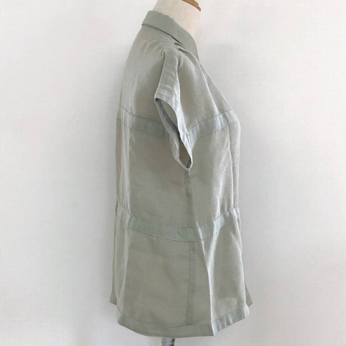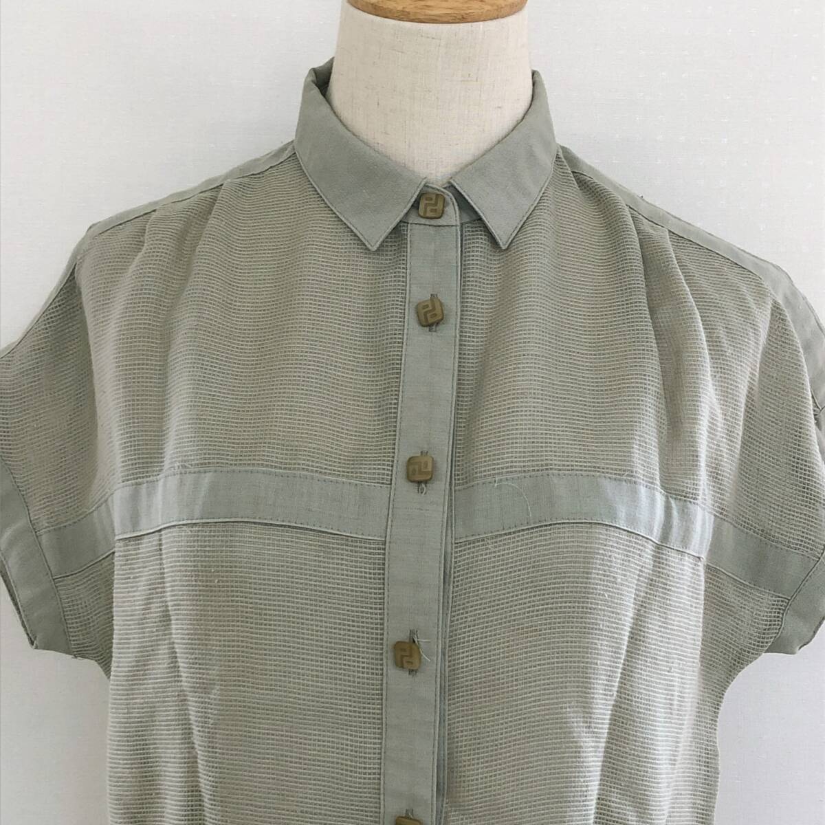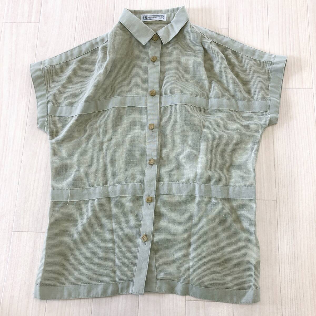 YX1590 Miss PIATTLLI レディース トップス シャツ 半袖 薄手 予備ボタン付 透け感 シースルー 麻 シンプル カジュアル 涼しげ 夏