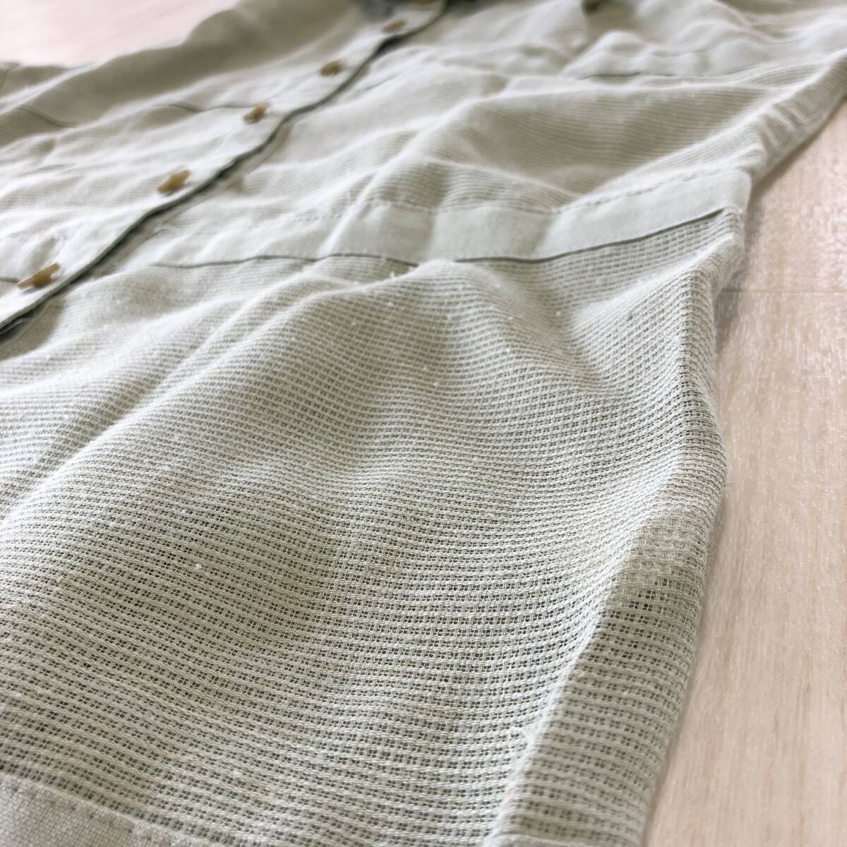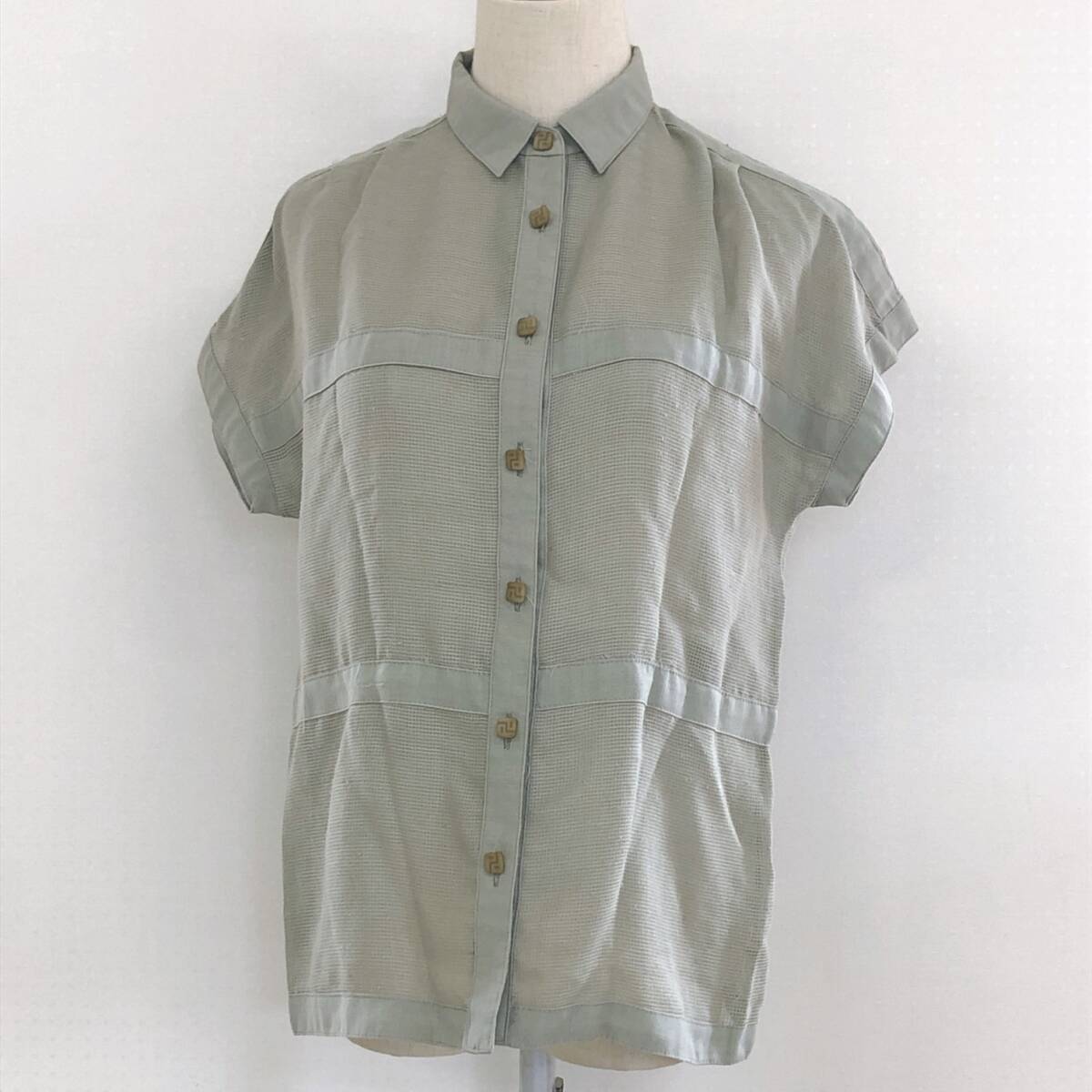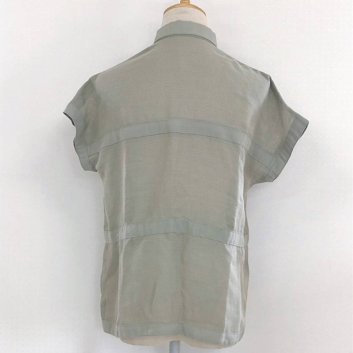YX1590 Miss PIATTLLI レディース トップス シャツ 半袖 薄手 予備ボタン付 透け感 シースルー 麻 シンプル カジュアル 涼しげ 夏