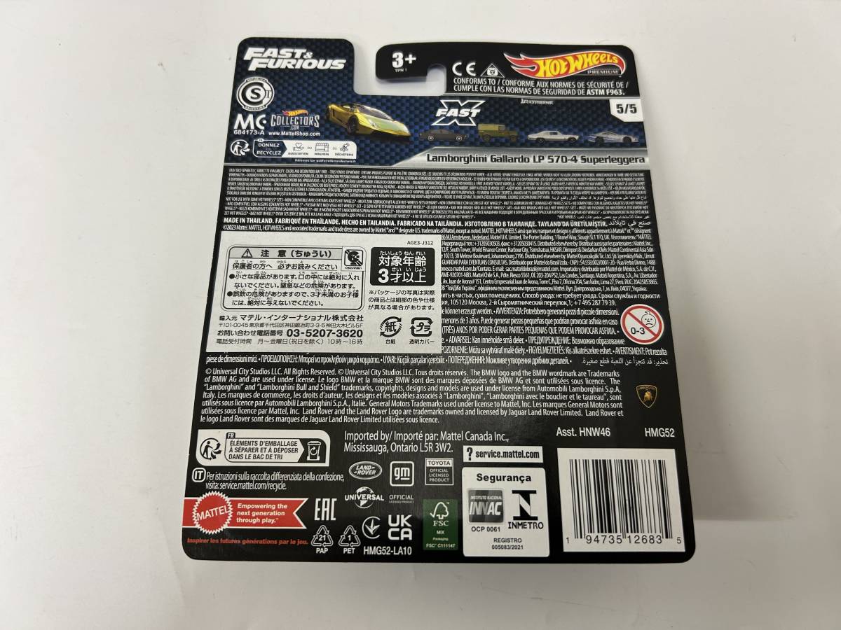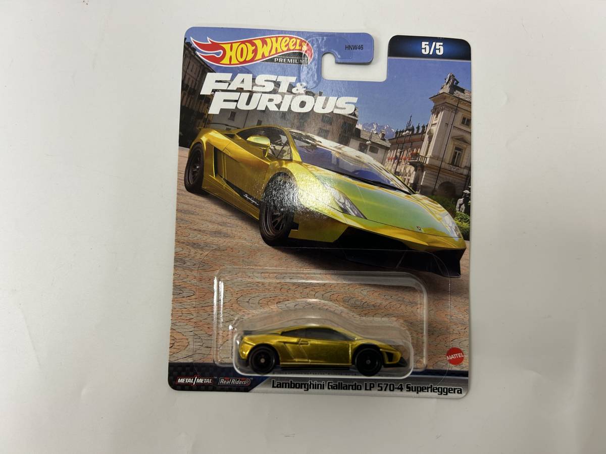 ホットウィール(Hot Wheels) ワイルド・スピード - ランボルギーニ・ガヤルド LP 570-4 スーパーレッジェーラ 【3才~】 HMG52 2023年5月に日本でも公開された『ワイルド・スピード』シリーズの第10作、『ワイルド・スピード/ファイヤーブースト』において、舞台をイタリアはローマとしたシーンにおいて、ファミリーのローマンが登場するのが、金色のメッキ・ラッピングが施されたランボルギーニ・ガヤルド。 眩しいボディ色は敵の視界で乱反射し、翻弄するにも有効という設定。ランボルギーニ・ガヤルドは2003年から2013年まで生産されたスーパーカーで、高い品質と速さを誇るランボルギーニのエントリーモデルとして、ランボルギーニ史上最多の14,000台あまりを生産する大ヒット車となった。 劇中車は2003~2008年までに生産された前期型を使用しているが、ホットウィールでは後期型の高性能仕様、スーパーレッジェーラをべエースに劇中車同様の彩色をジンクメッキ&カラークリア塗装を施している。 【原産国】タイ 【対象年齢】3才~ | ||||