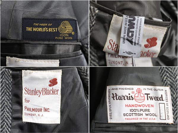 80年代のヴィンテージ 旧タグ ハリスツイード テーラードジャケットです。 ブランドは、STANLEY BLACKER 1955年、ジャケットデザイナーのスタンリー ブラッカーによって 創立されたアメリカのジャケット専門ブランド 老舗ブランドの手掛けた、しっかりとした作りの商品 素材は、100% PURE SCOTTISH WOOL (ハリスツイード) しっかりとした保温性の高い素材が使用されています MADE IN USA ( アメリカ製 ユニオンチケット 付き) 2ボタン フロント、クルミボタン使用 3ポケット サイドポケットはフラップ付きポケット 落ち着いた、グレー系のミックスカラー 定番かつ、人気のヘリンボーンストライプ 合わせやすい、ヴィンテージの良い雰囲気のあるカラー カジュアルからフォーマルまで 様々なシーンで着用して頂けます。 |