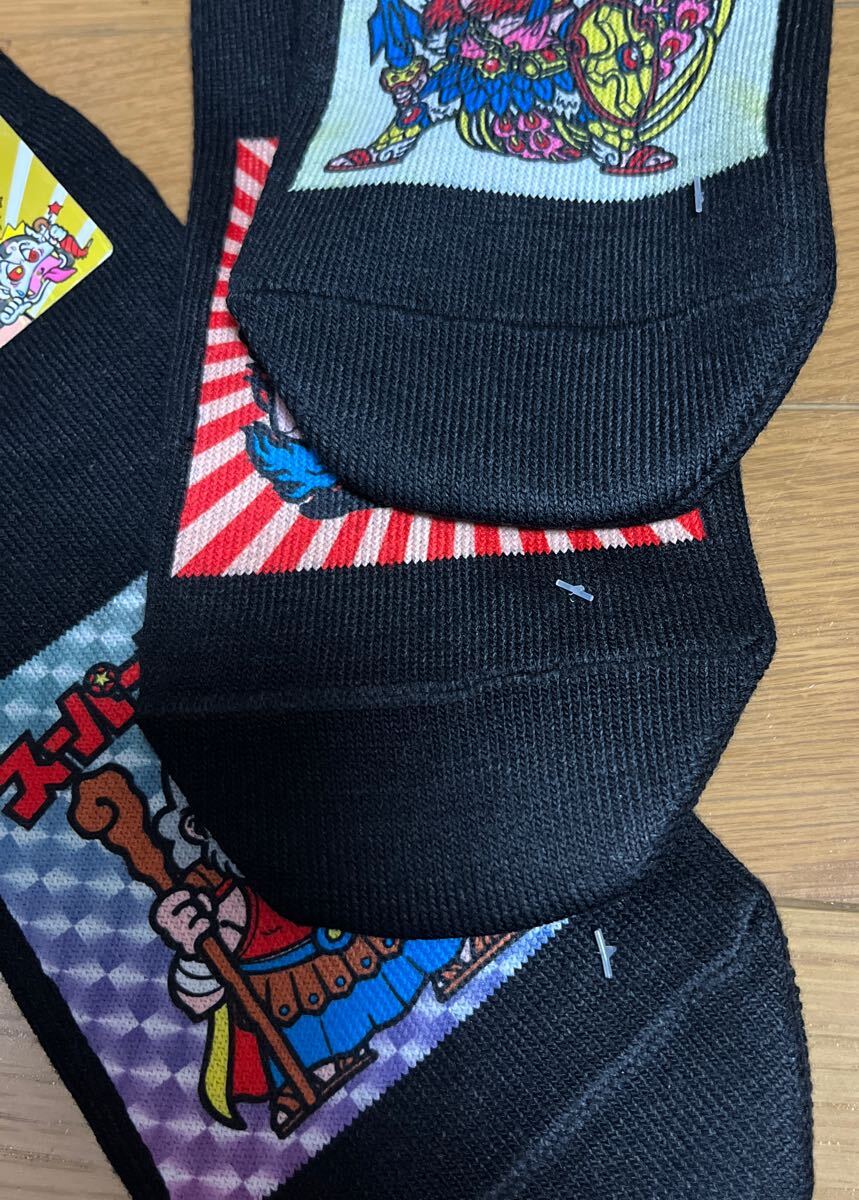 1枚目の画像の物が全てです。 ヘッド3キャラの靴下です。キャラクターを組み変えてアシンメトリー(左右非対称)にして履いても面白いかもしれません。