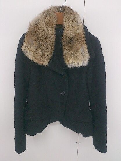 ◇ mystic ミスティック フェイクファー ウール 長袖 ジャケット ブレザー サイズF ブラック レディース E