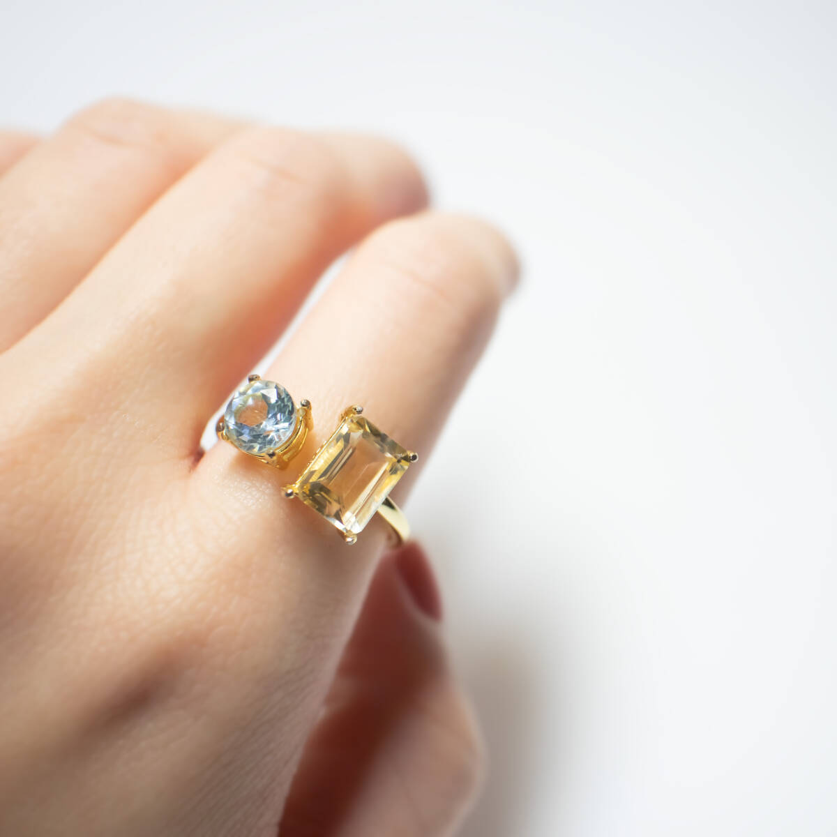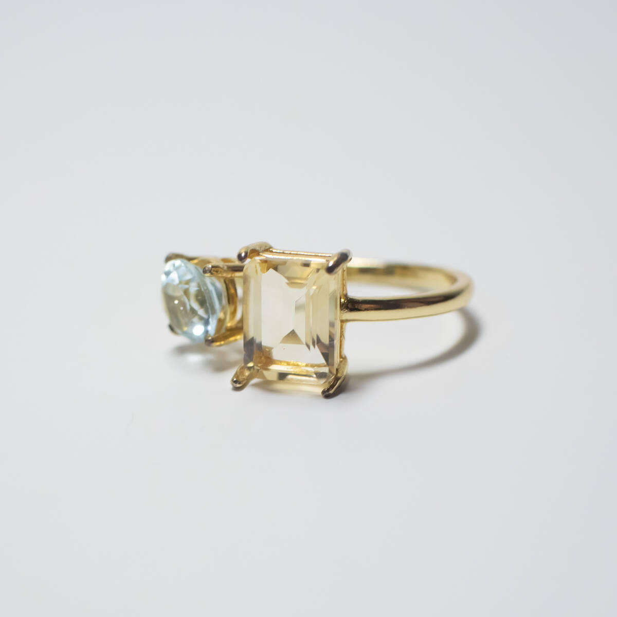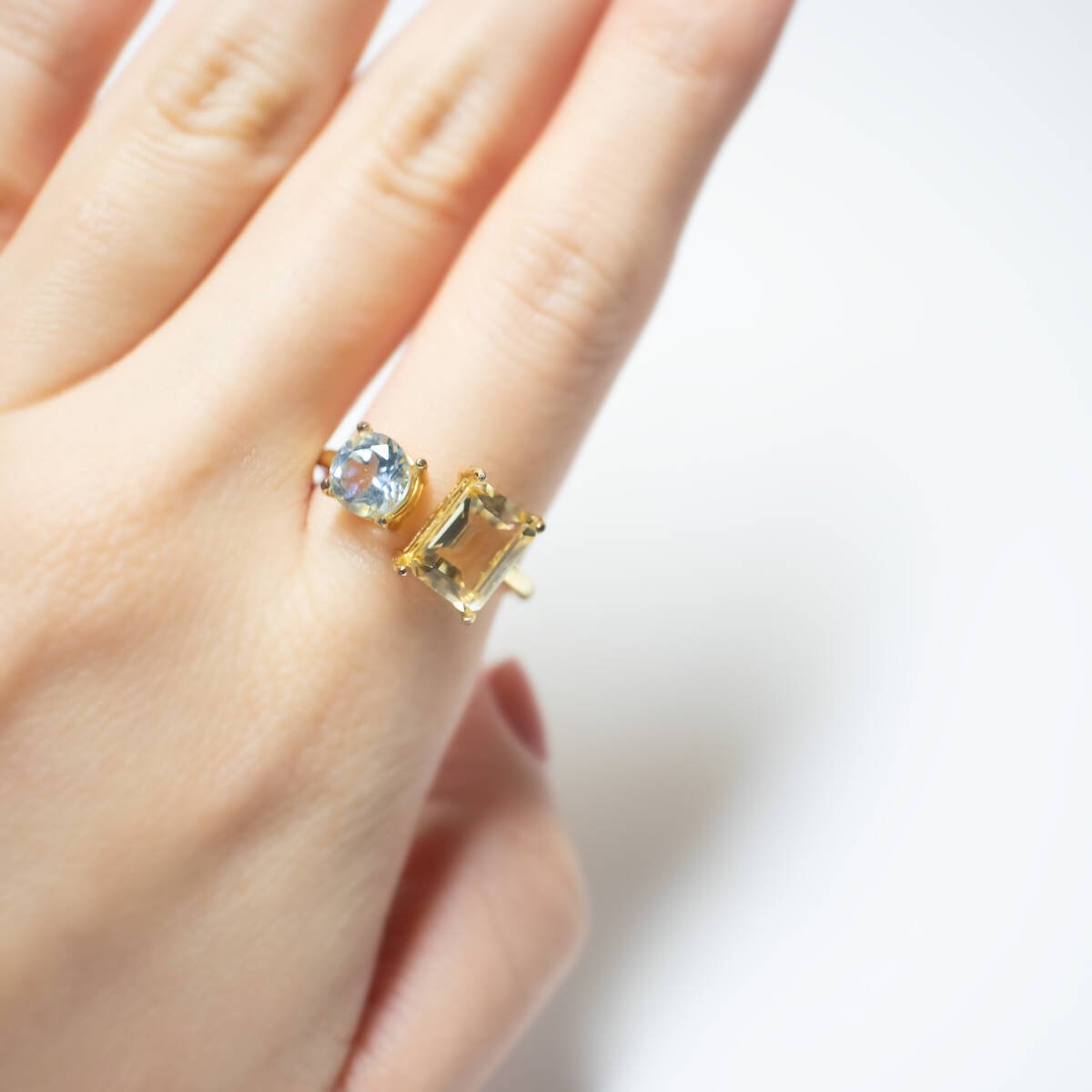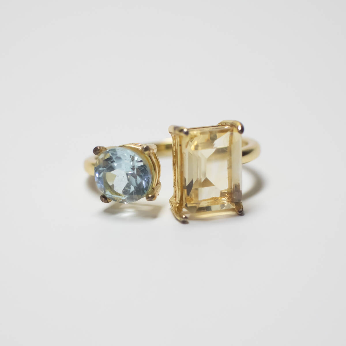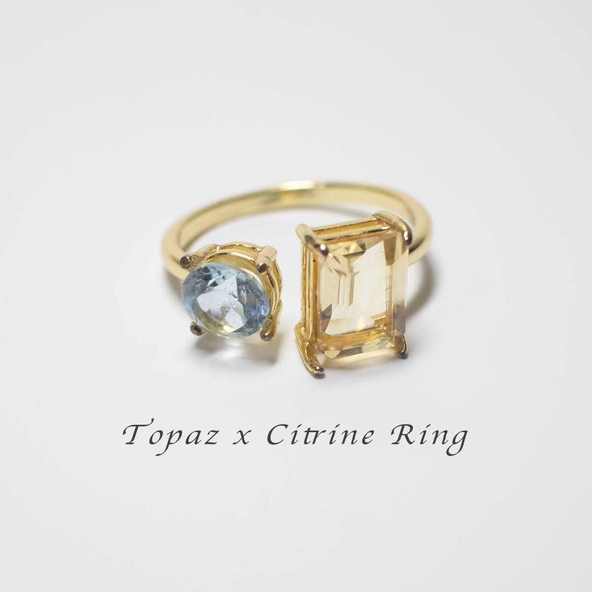 ブラジル産宝石質シトリンと宝石質スカイブルートパーズのリングです。