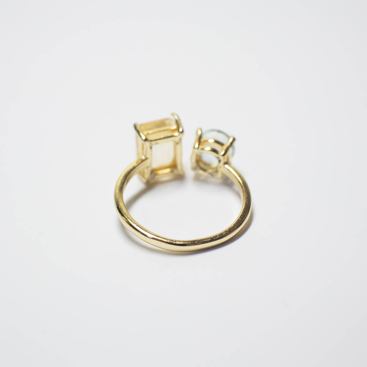 天然石◆シトリン×スカイブルートパーズ【フリーサイズ】フォークリング 金アレ対応 ニッケルフリー