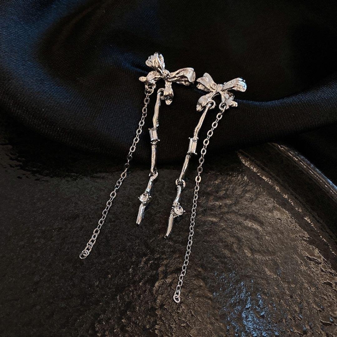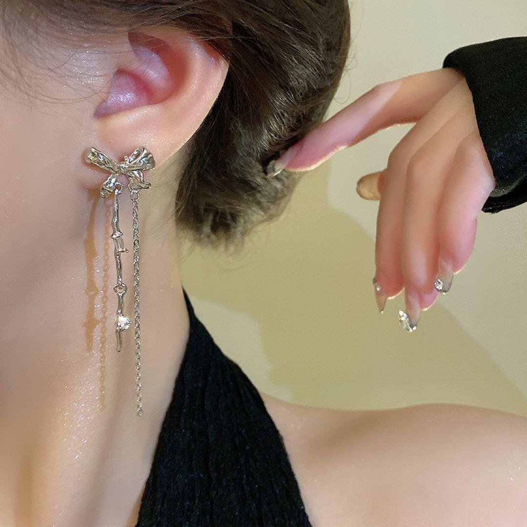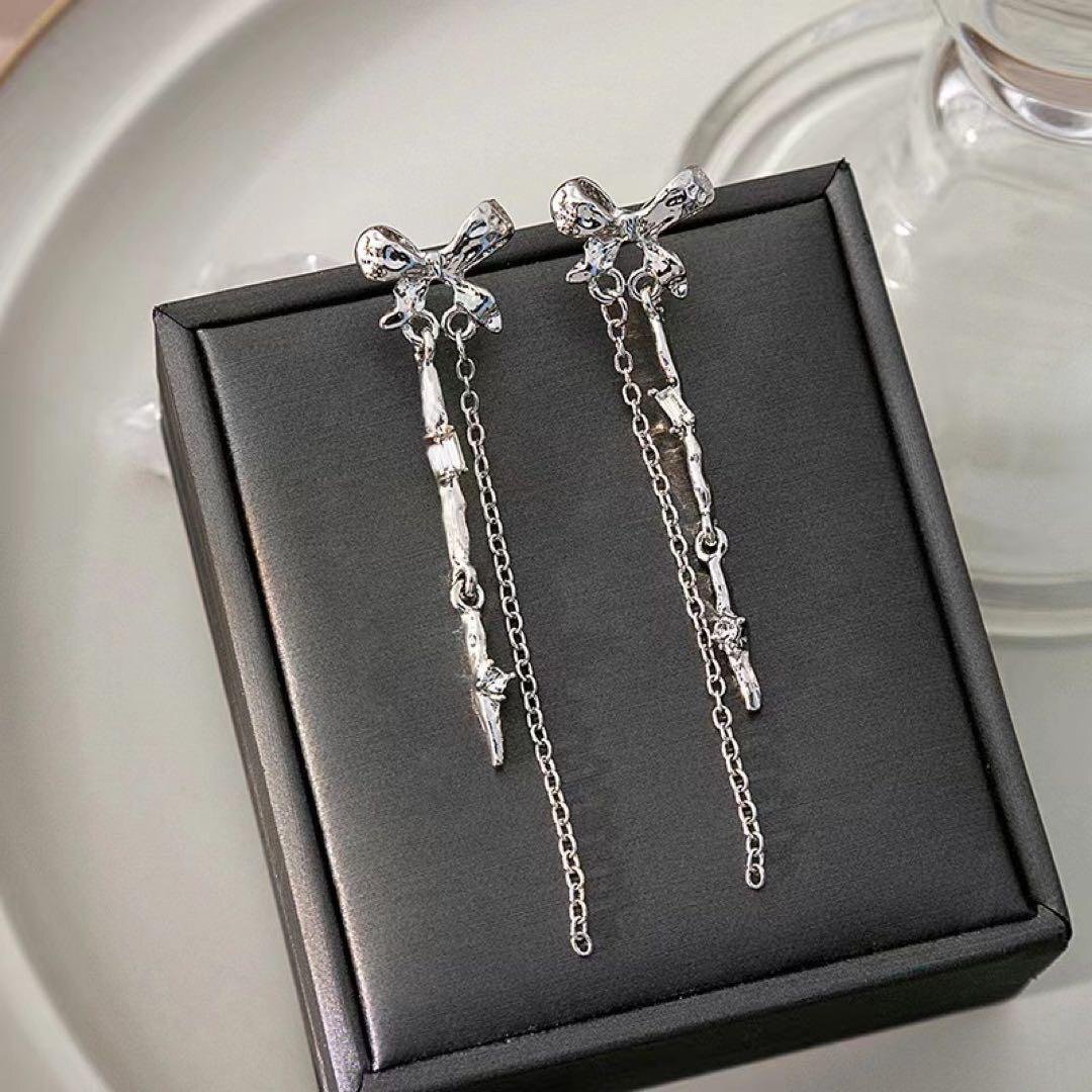 新品 リボンピアス チェーンピアス レディース ピアス シルバー925ピアス アレルギー対応 ins風