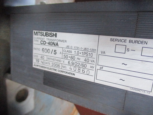 三菱電機 計器用高圧変圧器 CD-40NA  600/5A 50/60Hz   になります。
