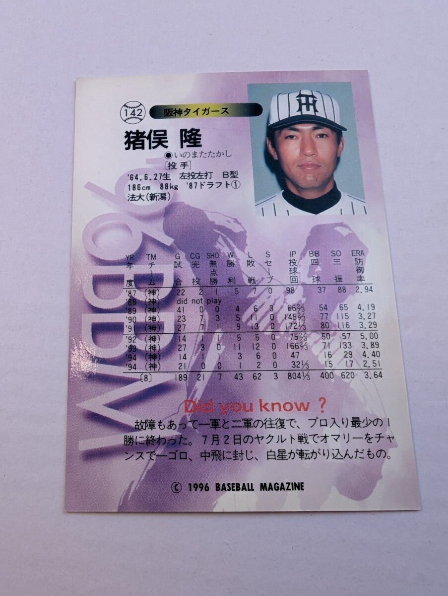 阪神タイガース猪俣隆!1996BBM142中日ドラゴンズ |