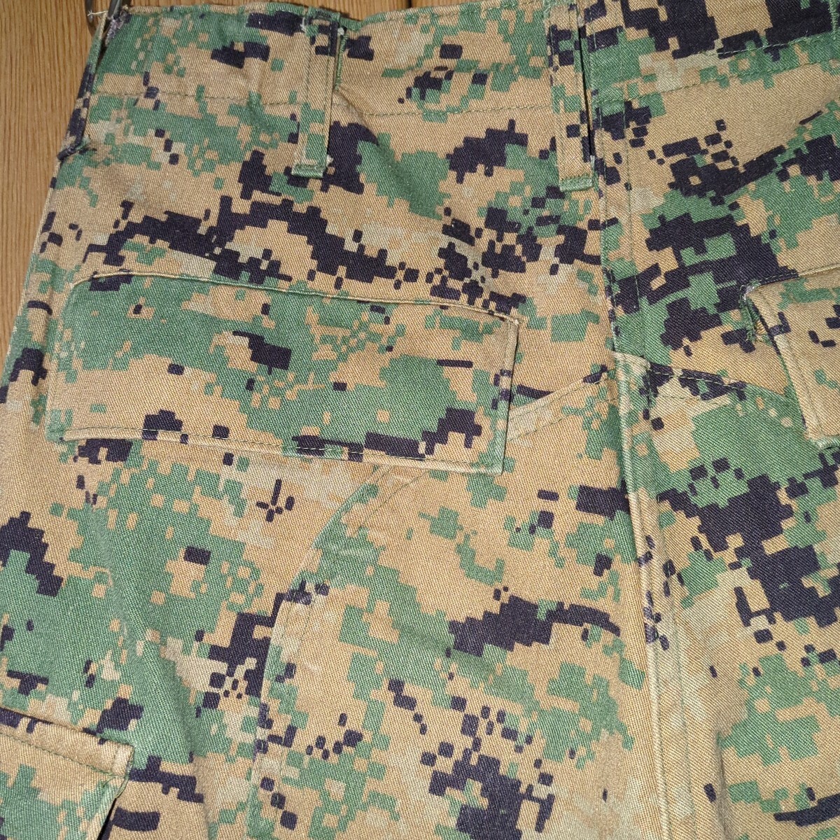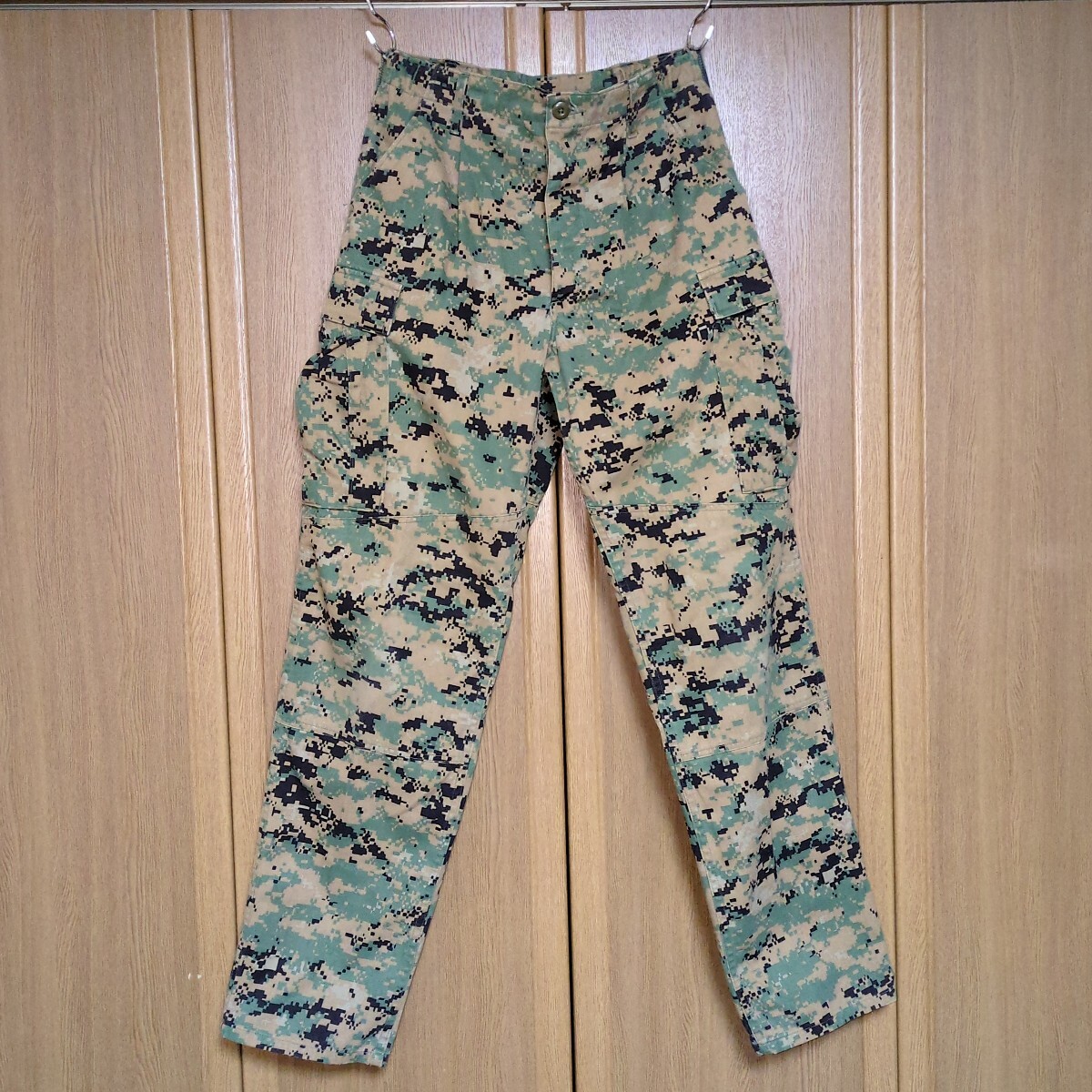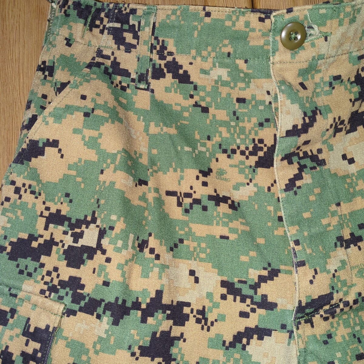 プロッパーの迷彩柄(デジタルカモ)のカーゴパンツです。ボタンフライです。若干の使用感ございますが、特に大きなダメージも無く、まだまだ着用して頂けるかと思います。あくまでもUSED品ですので、古着のご理解のない方、神経質な方、入札お断りです。メーカーサイズ表記Sで、平置き採寸で、ウエスト37,5センチ、前股上32,5センチ、股下83センチ、太ももあたり30、5センチ、裾幅20,5センチです。素人採寸ですので多少の誤差はお許し下さい。