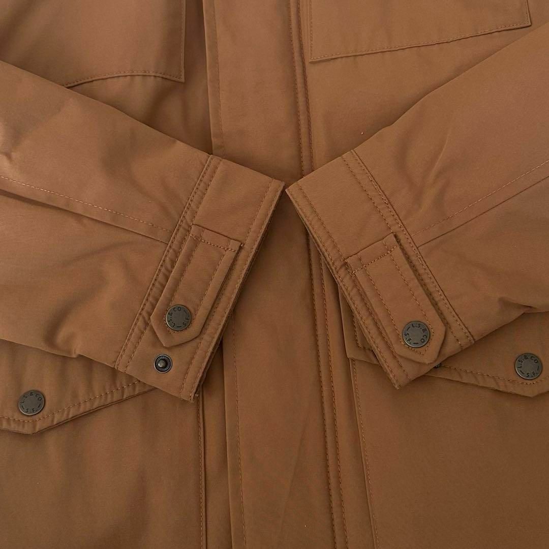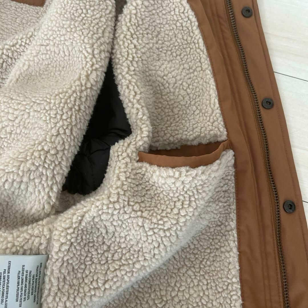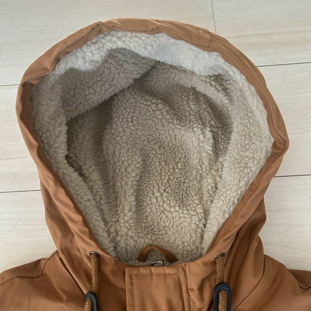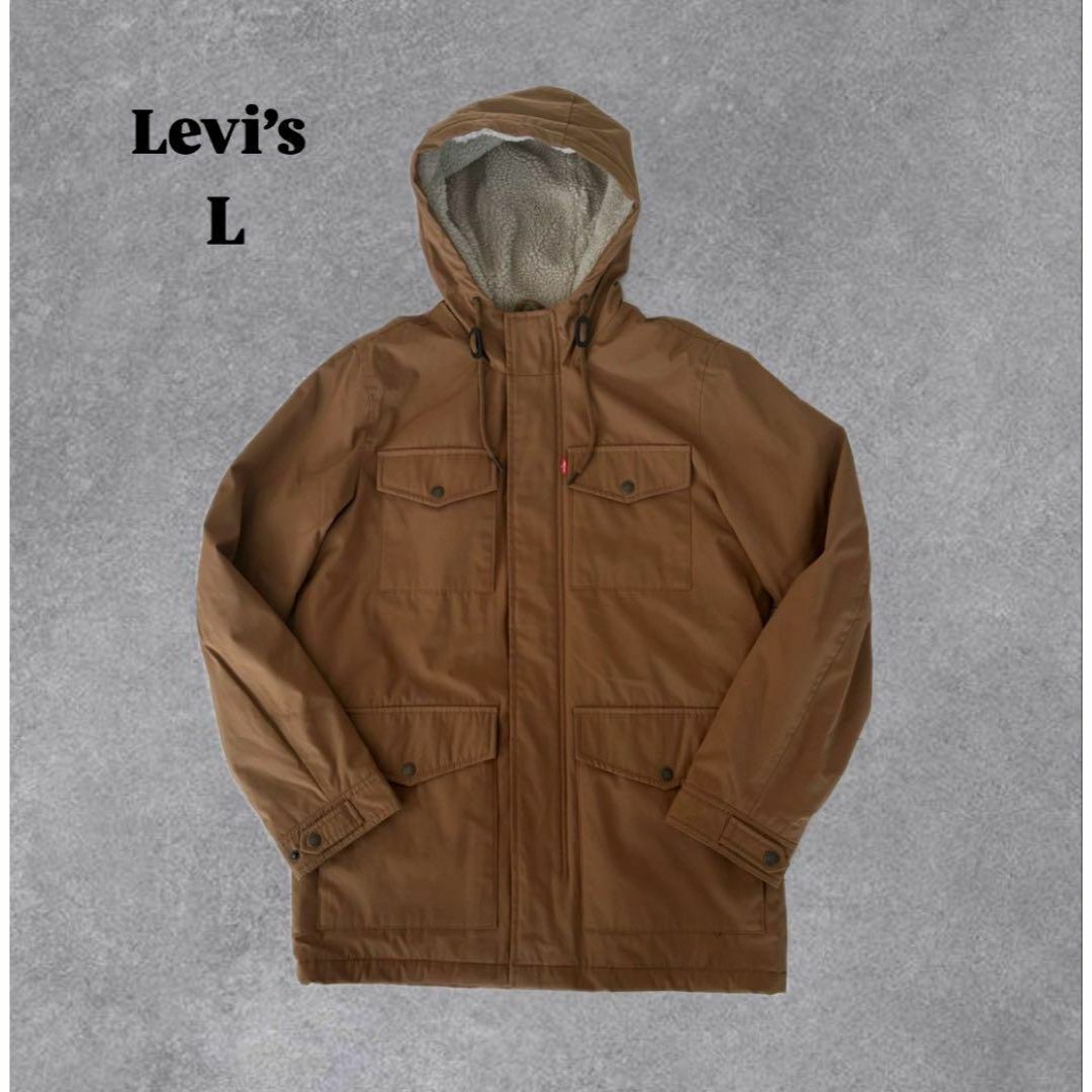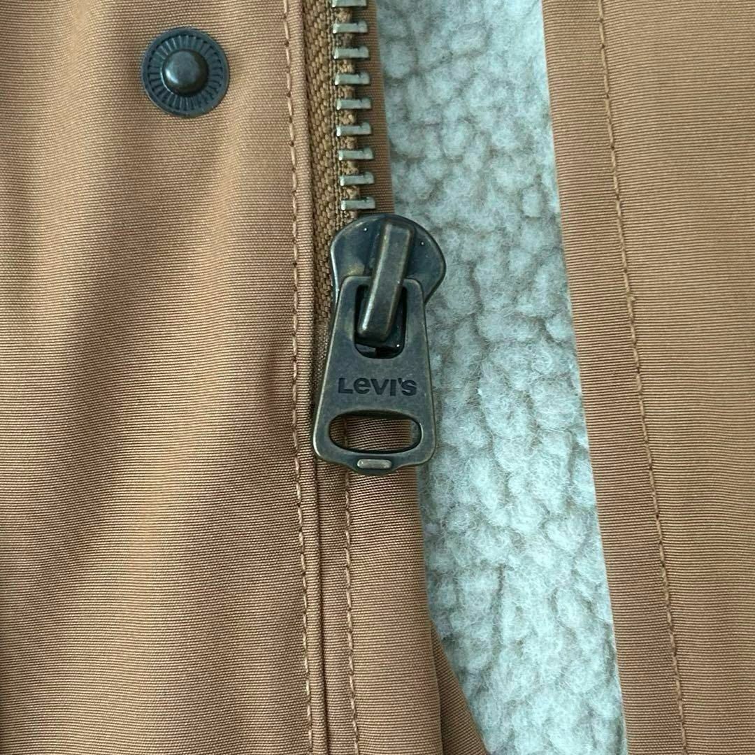 リーバイスのマウンテンパーカー。内側はボアライナー仕様で暖かく、アウトドアやタウンユースにぴったり。ブラウンカラーがコーデに馴染む一着。