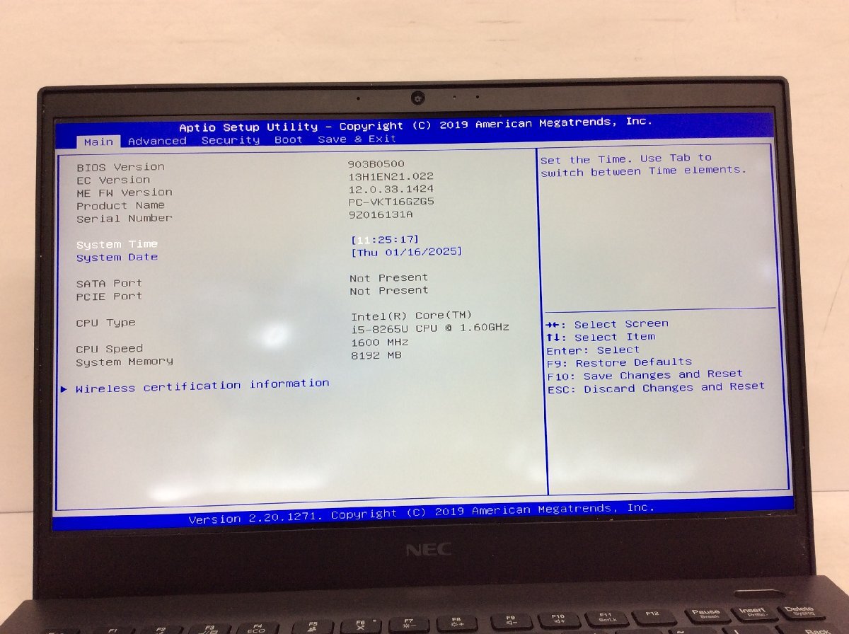 ジャンク/ NEC PC-VKT16GZG5 Intel Core i5-8265U メモリ8.19GB ストレージ無し 【K06543】