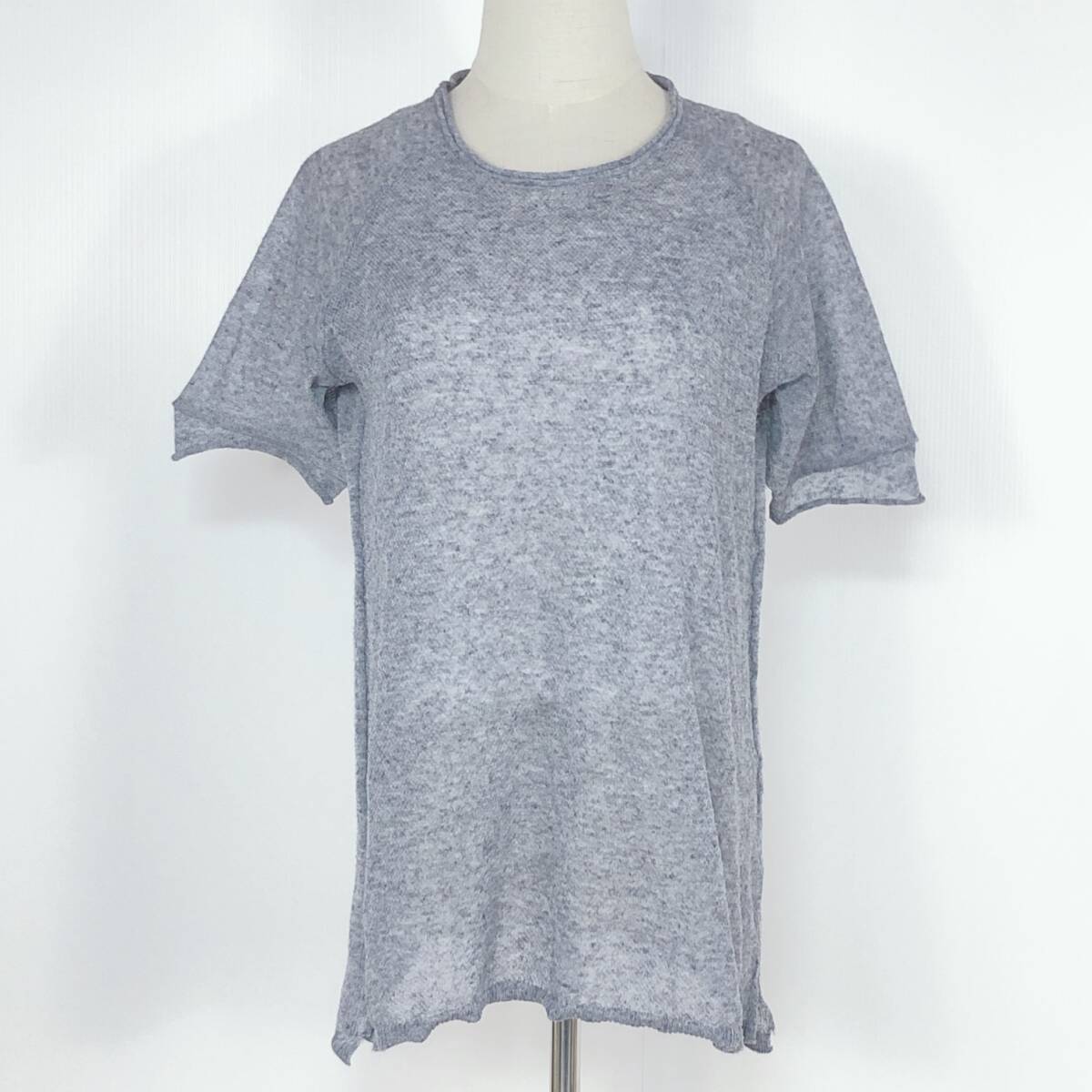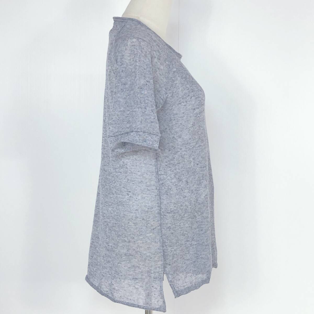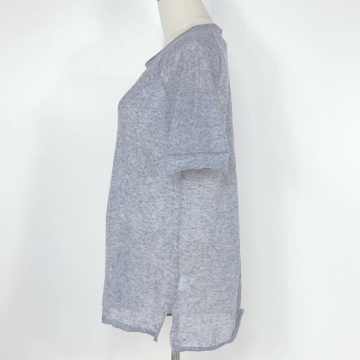 YX1246 B.L.U.E レディース セットアップ 半袖 薄手 伸縮性 透け感 スリット グレー 灰 綿 麻 シンプル カジュアル おしゃれ 涼しげ 夏