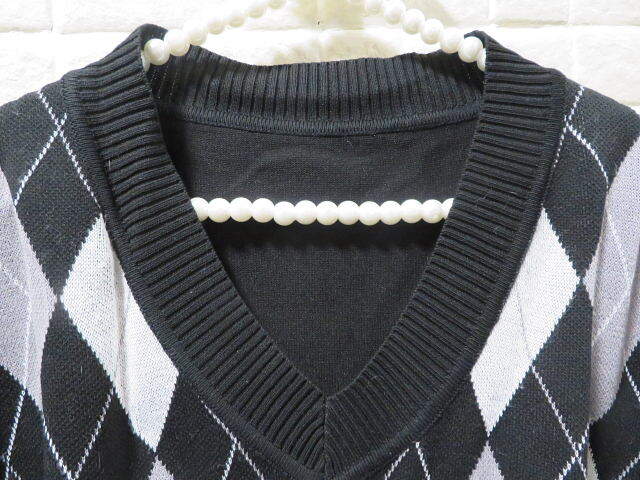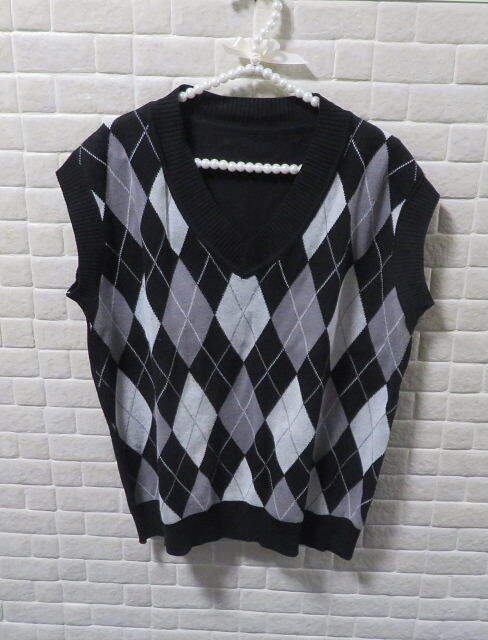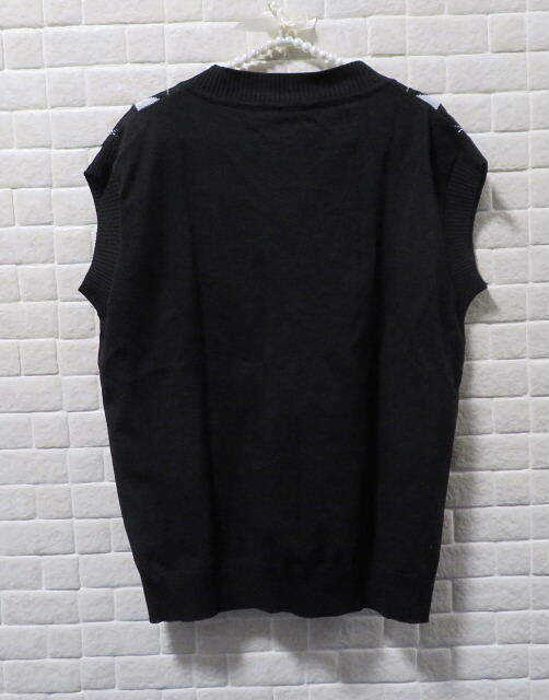 アーガイル柄ベスト ブラック 黒 アーガイル ベスト サイズS フレッピー ニットベスト 学生ベスト S