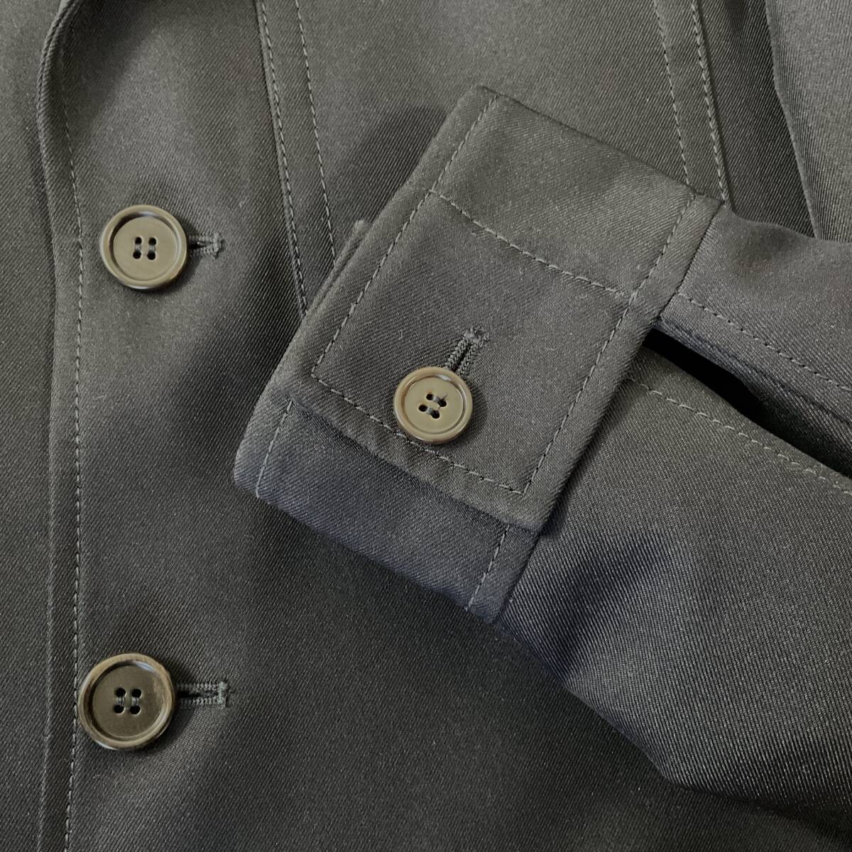 黒に近い濃いネイビーです。3〜4枚目の写真は自然光で撮影したもの、他は蛍光灯の光で撮影しました。