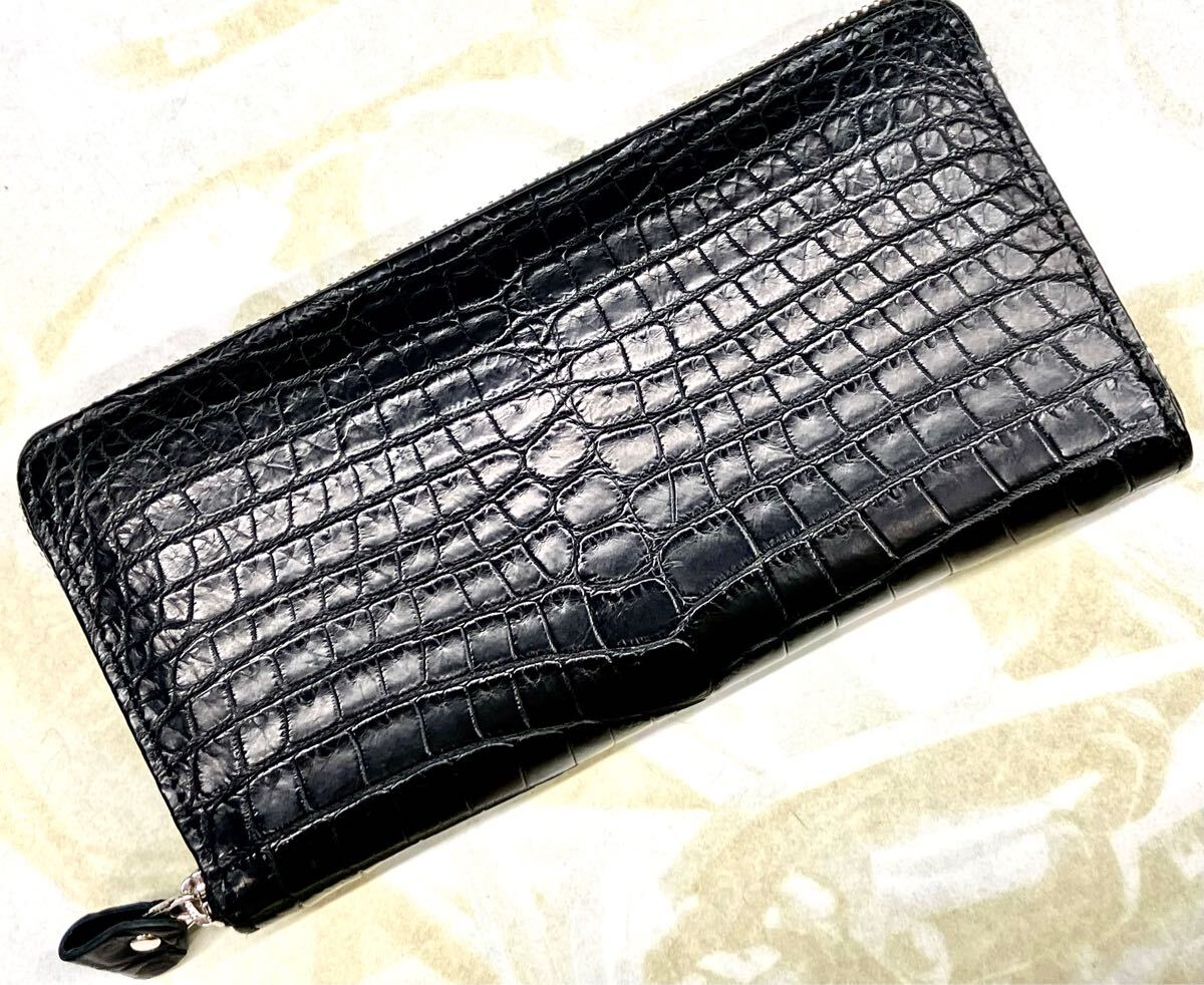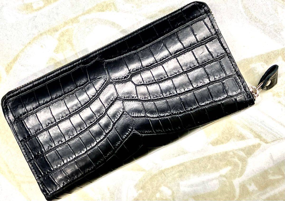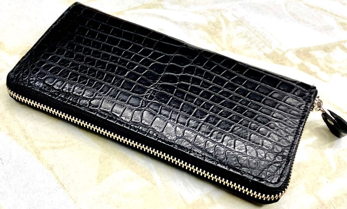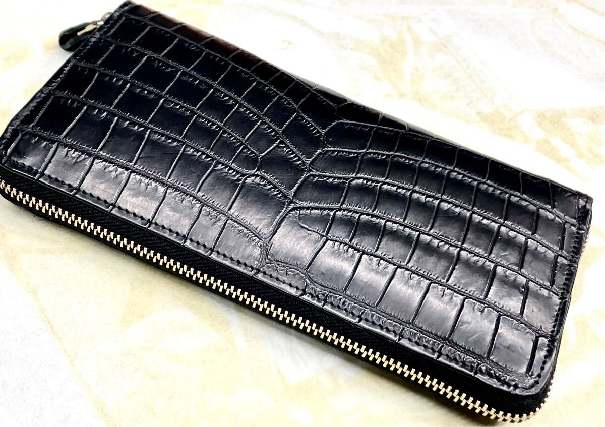 国産、日本製のクロコダイルワニ革使いのラウンド長財布です。