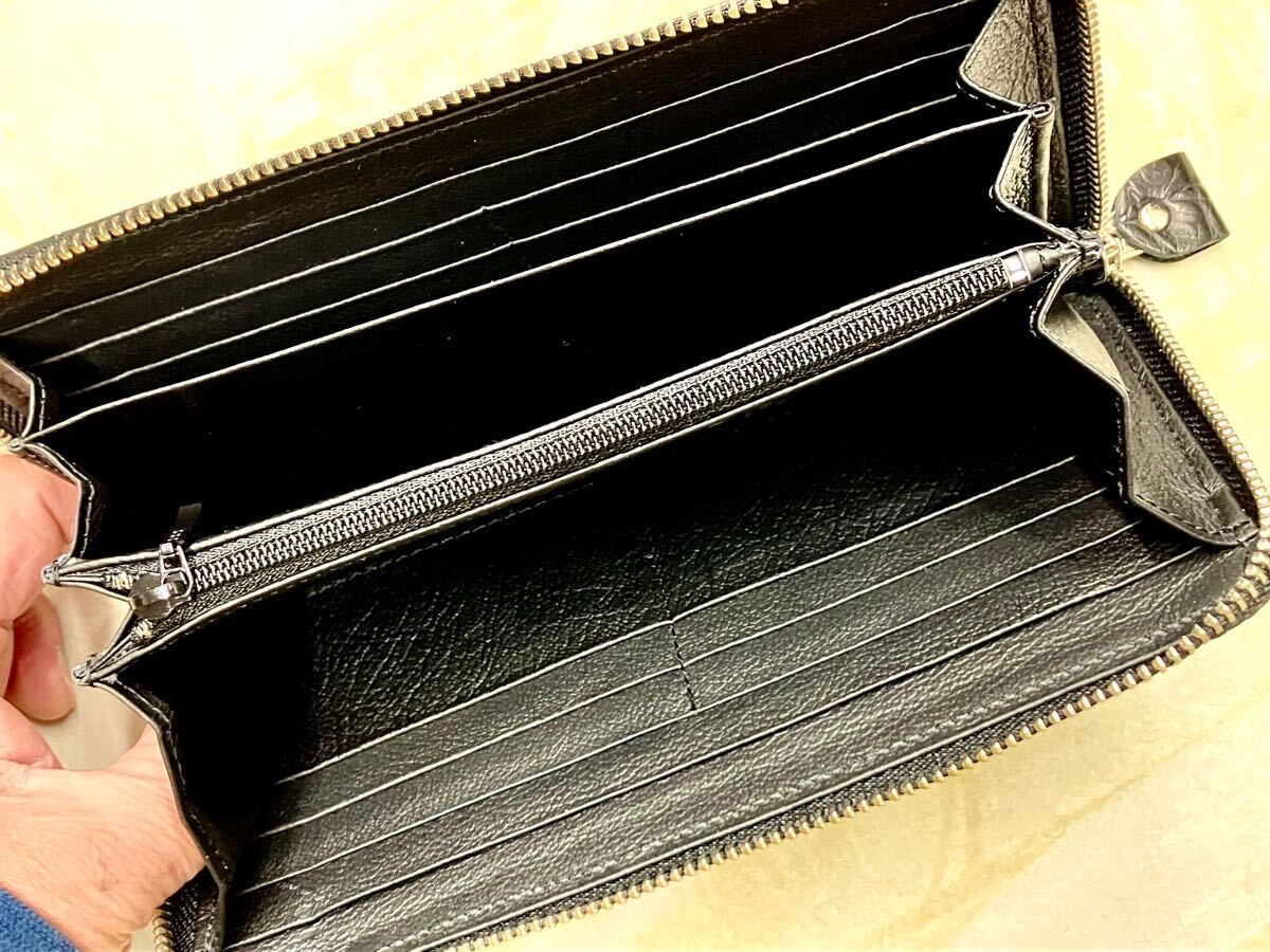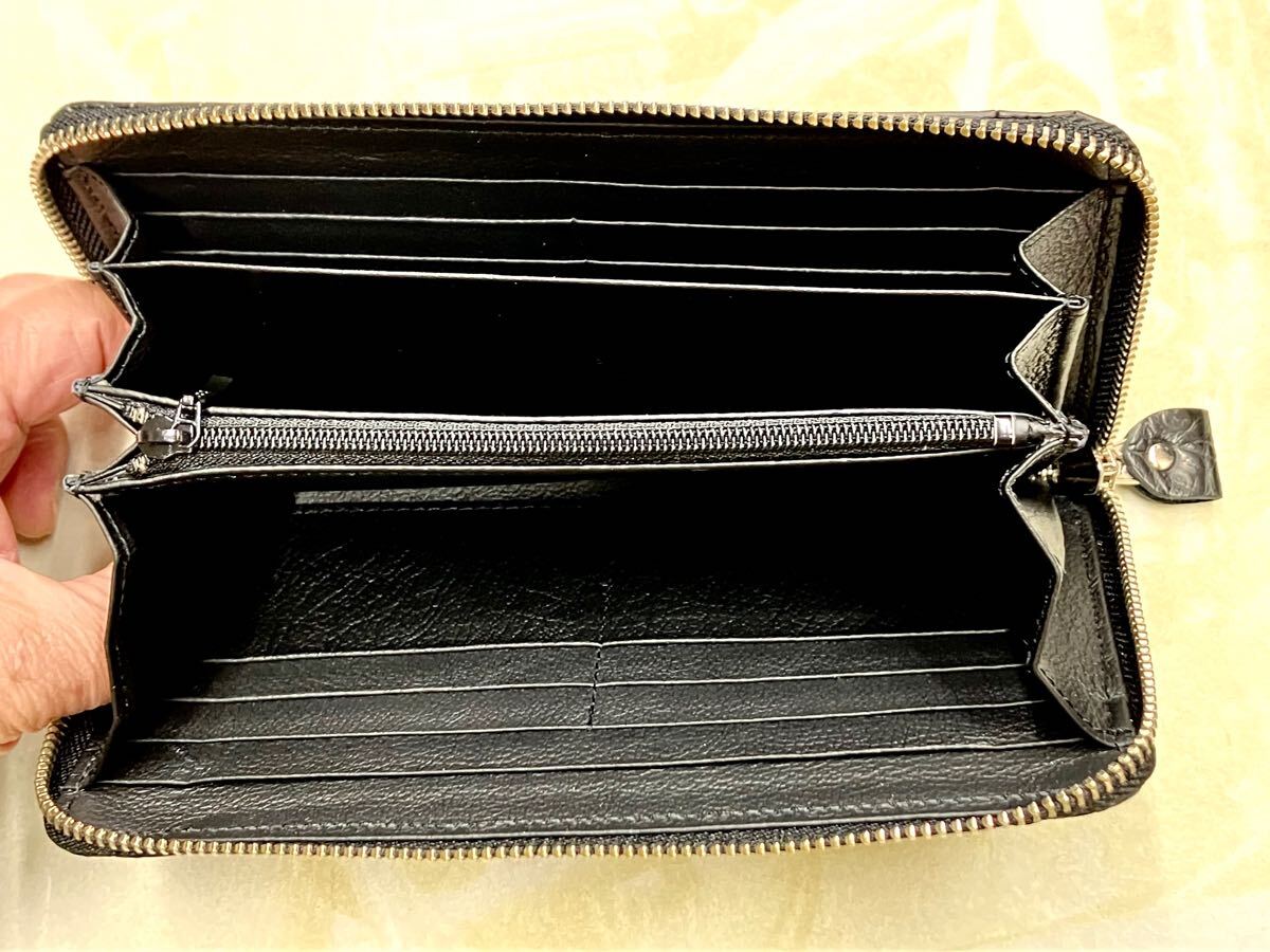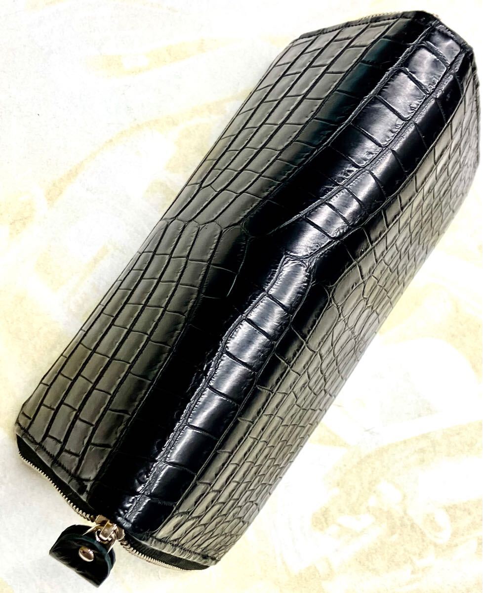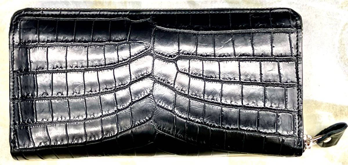国産、日本製のクロコダイルワニ革使いのラウンド長財布です。