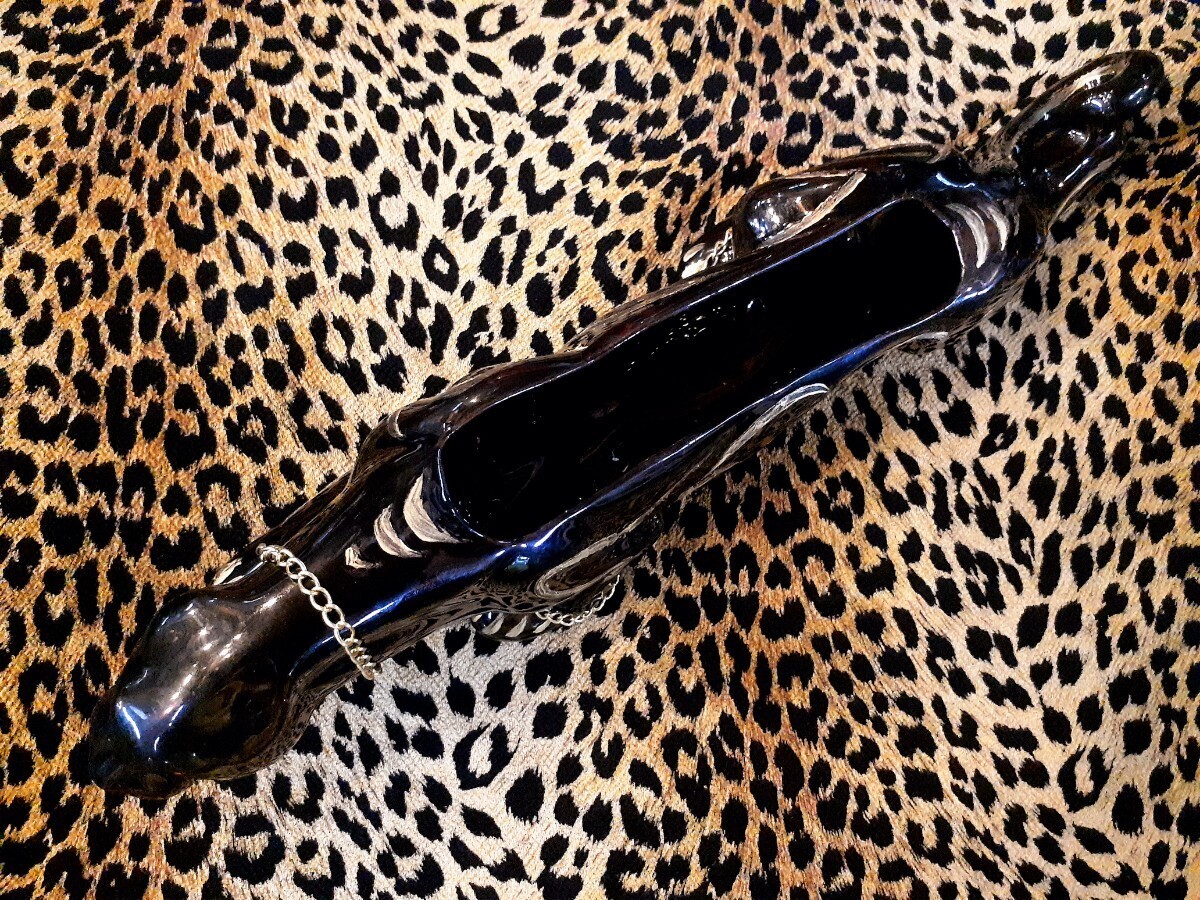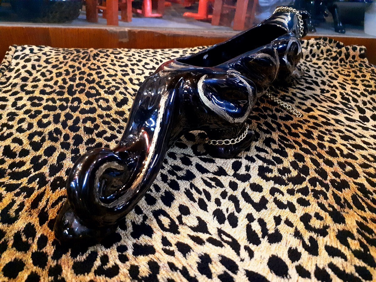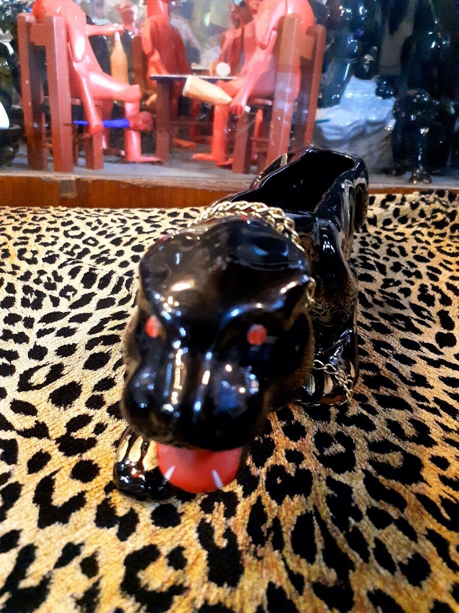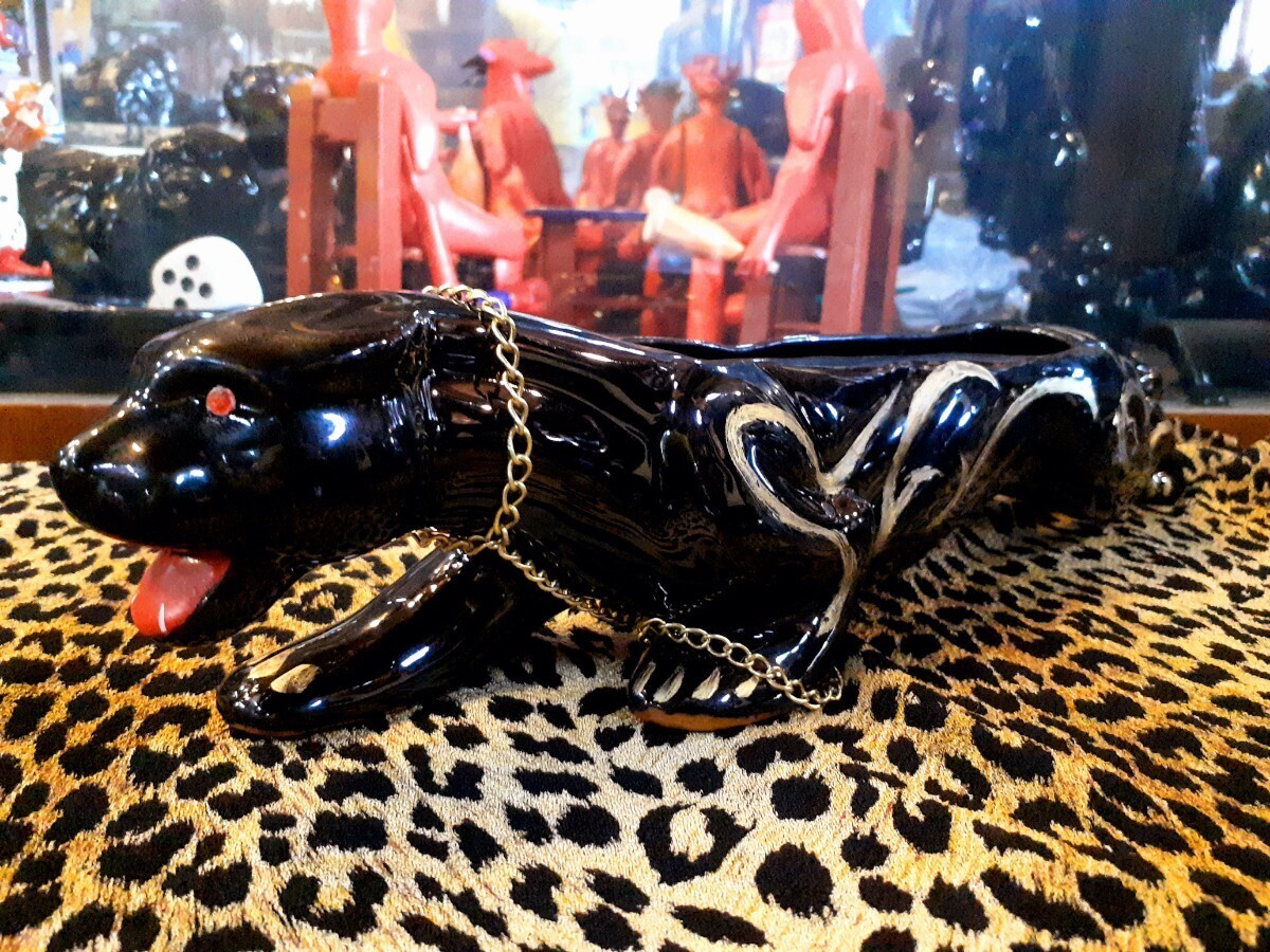 コロラドのアンティークショップにて購入したもので重厚な赤い眼のブラックパンサーにゴールドペイントと真鍮チェーンの組み合わせが渋い1品です
