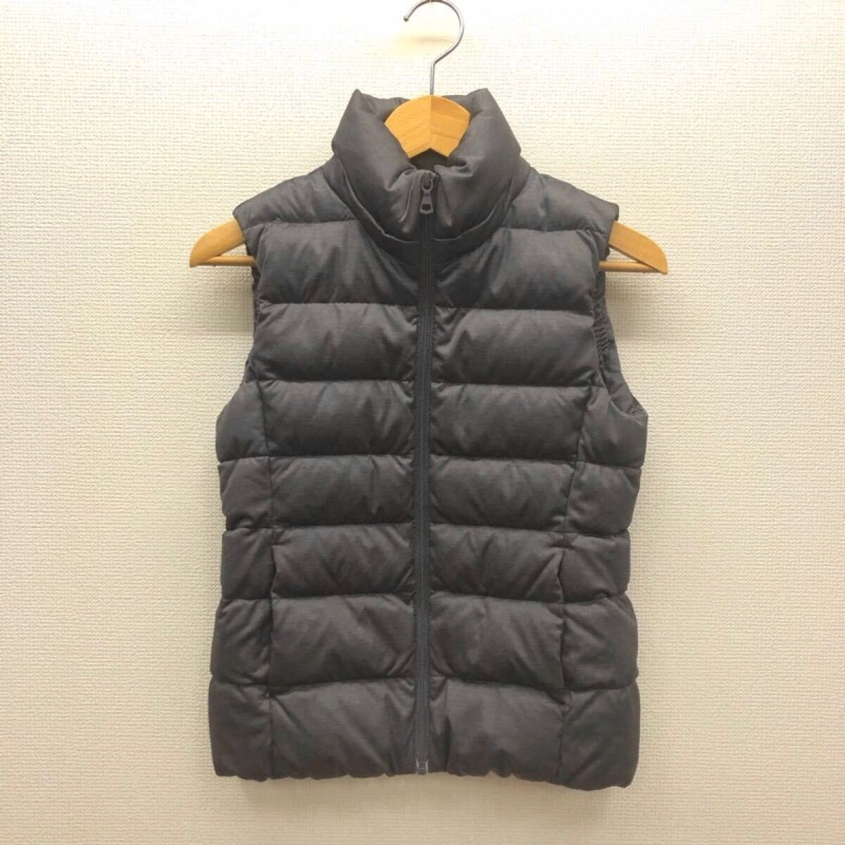 【の015】UNIQLO ライトダウンベスト Sサイズ グレー スタンドカラー 裾ゴム 軽量ダウン レディースブランド古着 ユニクロ 送料無料