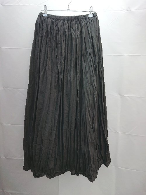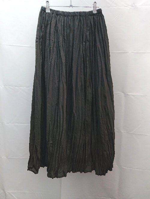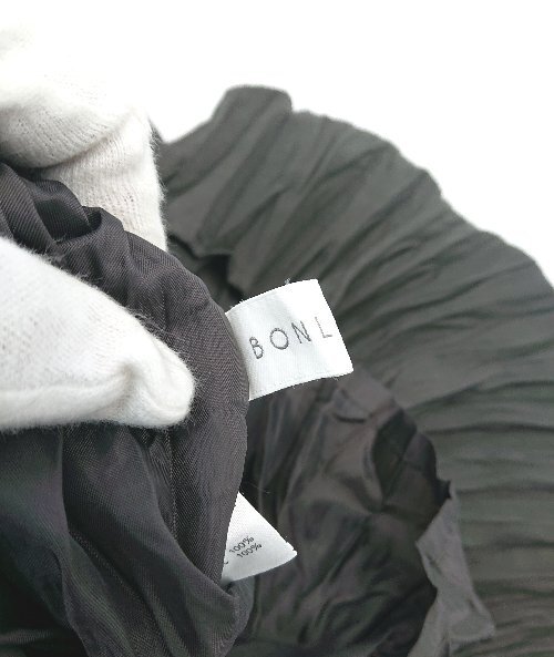 ◇ BONLECILL ウエストゴム 裏地 プリーツ ひざ丈 フレア スカート サイズF ブラック系 レディース E