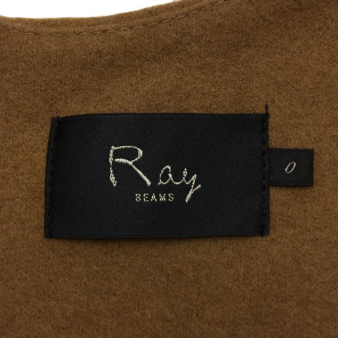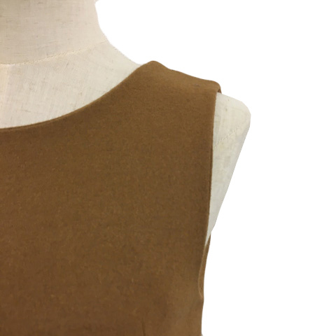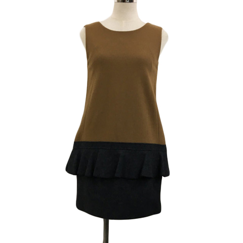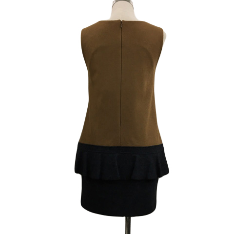 レイビームス ワンピース チュニック ミニ ラウンドネック フリル 切替 バイカラー ウール 無地 ノースリーブ 0 茶 グレー ブラウン