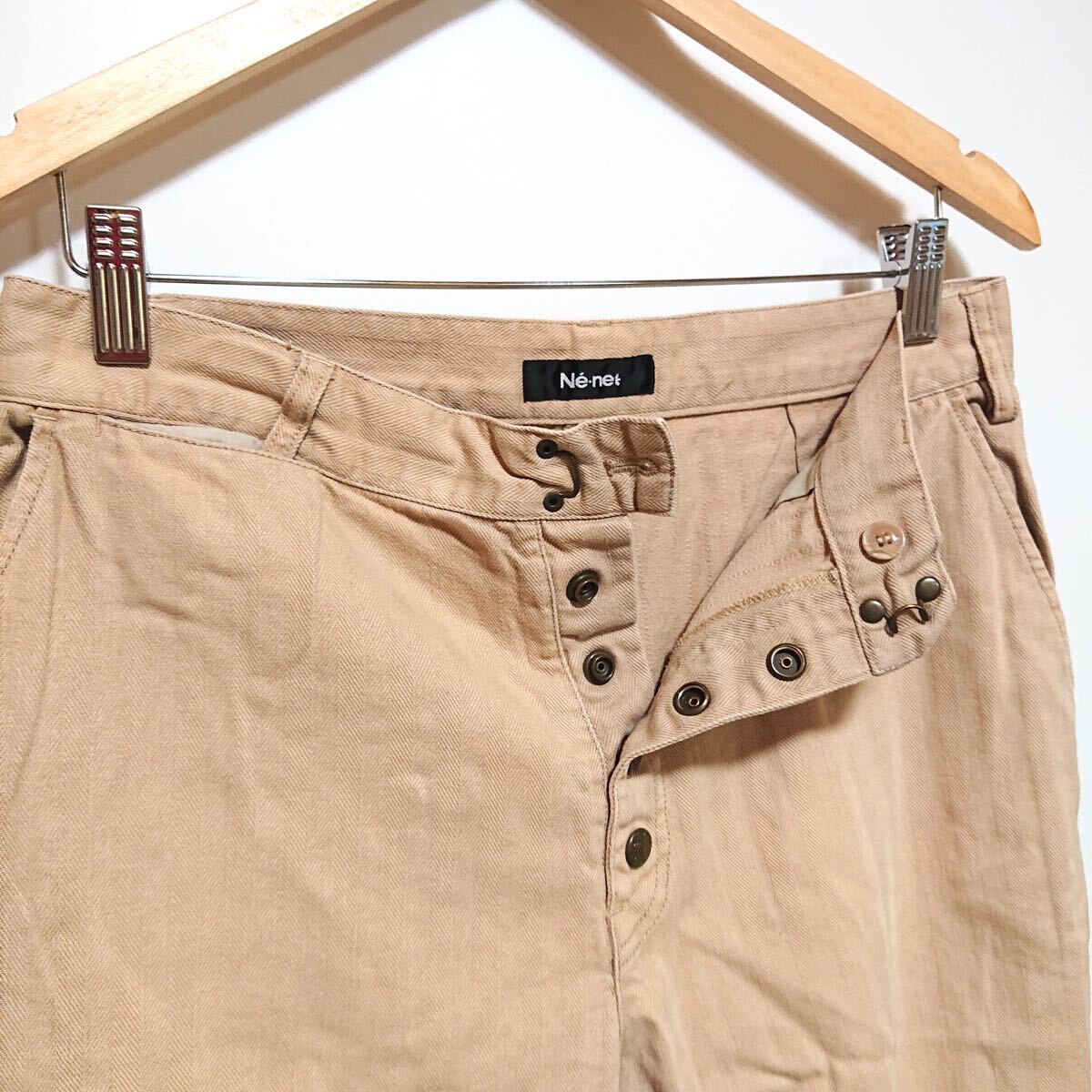 h1575gg Ne-net(ネネット)サイズ3(L位) パンツ ベージュ レディース 七分丈 裾絞り カジュアル おしゃれ 綿100% 着まわし 古着 男女兼用