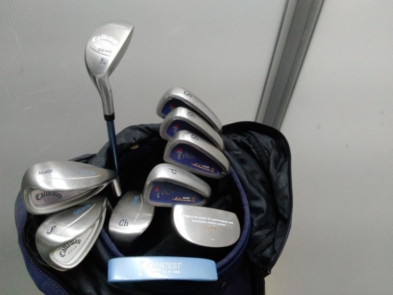 【セット内容】 ・Callaway GEMS 5H ALDILA FLES W 全長約1040㎜ ヘッドに擦り傷・汚れ・グリップに劣化があり、 ラップで保護しています。シャフトは比較的綺麗です。 ・Callaway アイアン #9 ALDILA FLEX W ・Callaway アイアン #S ALDILA FLEX W ・Callaway アイアン #Ch ALDILA FLEX W ヘッドに擦り傷・汚れ・グリップに劣化があり、 ラップで保護しています。シャフトは比較的綺麗です。 ・FILA アイアン #5 Fila MillenniumⅢ 2000 FLEX L ・FILA アイアン #6 Fila MillenniumⅢ 2000 FLEX L ・FILA アイアン #8 Fila MillenniumⅢ 2000 FLEX L ・FILA アイアン #P Fila MillenniumⅢ 2000 FLEX L ヘッドに擦り傷・汚れ・シャフトに当て傷の表面の剥がれなど ありますが、グリップは比較的綺麗です。 ・GEAR MAX パター classic series WG-355 全長約870㎜ ヘッドに擦り傷・汚れ・グリップに劣化が見られますが、 シャフトは比較的綺麗です。 ・CONTEST パター CRAFTED BY 8G8 DLA-04 全長約830㎜ ヘッドに擦り傷・汚れありますが、シャフト・グリップは 比較的綺麗です。 ・FILA キャディバッグ 5分割 サイズ:約320×250×H1250mm 擦り傷・汚れ・変色・フードカバーに穴(貫通しています)・ タバコの臭いなどあります。 取扱説明書なし。画像に写っている物が全てとなります。 |