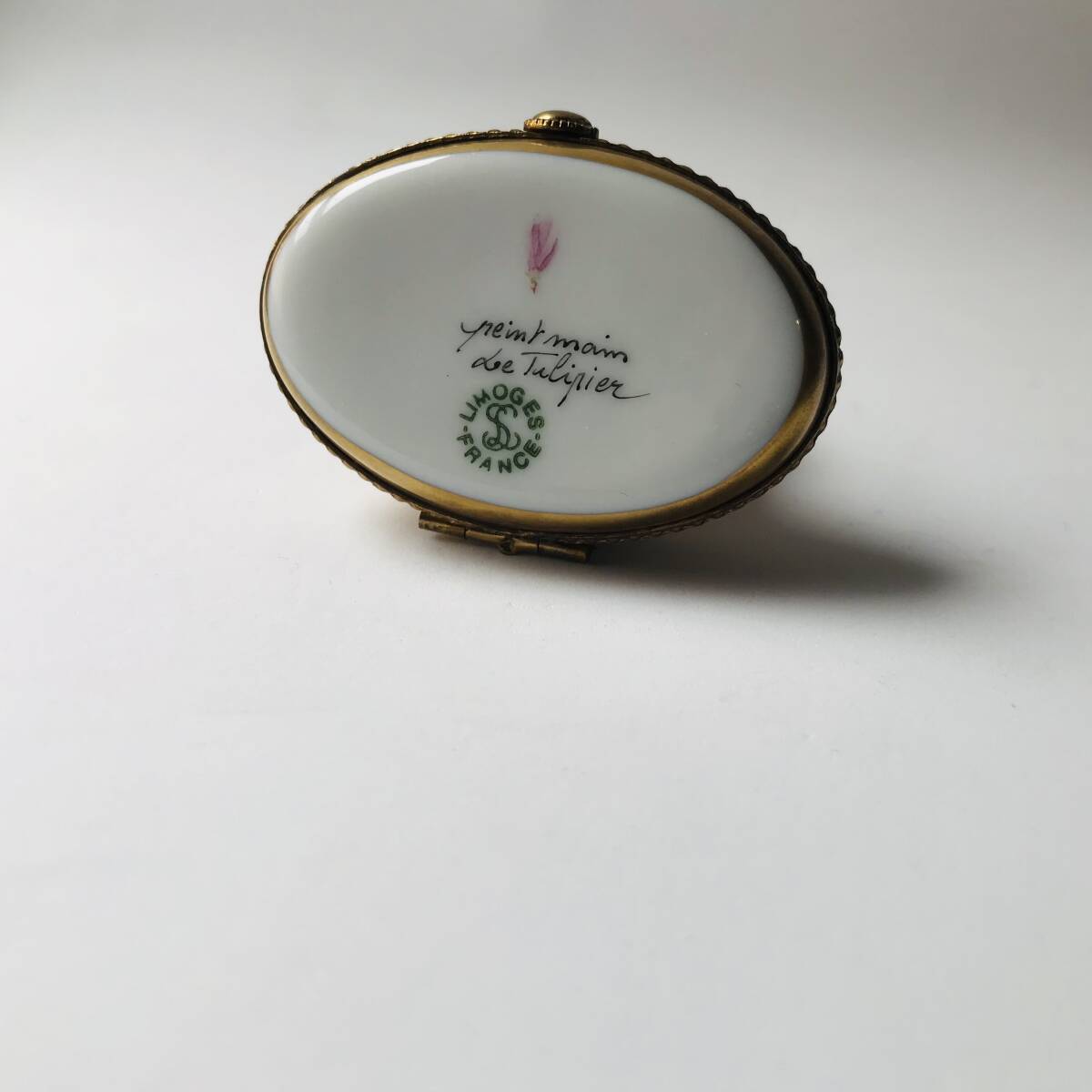 パリの南東400キロの町リモージュはヨーロッパ磁器の中心地。そこで作られた職人手作りの手のひらサイズのボックスは一般にリモージュボックスと呼ばれ密かにコレクションされています。真鍮製の留金付き。小物入れとして使う方もいらっしゃいます。
