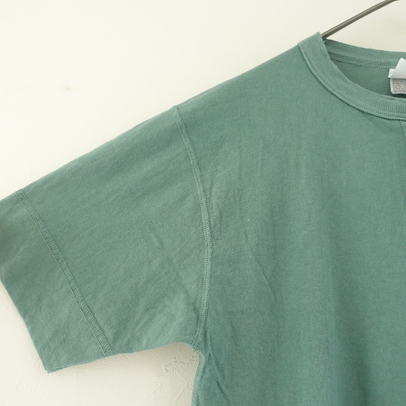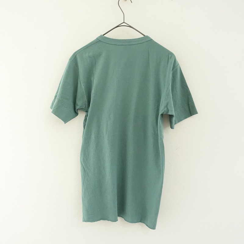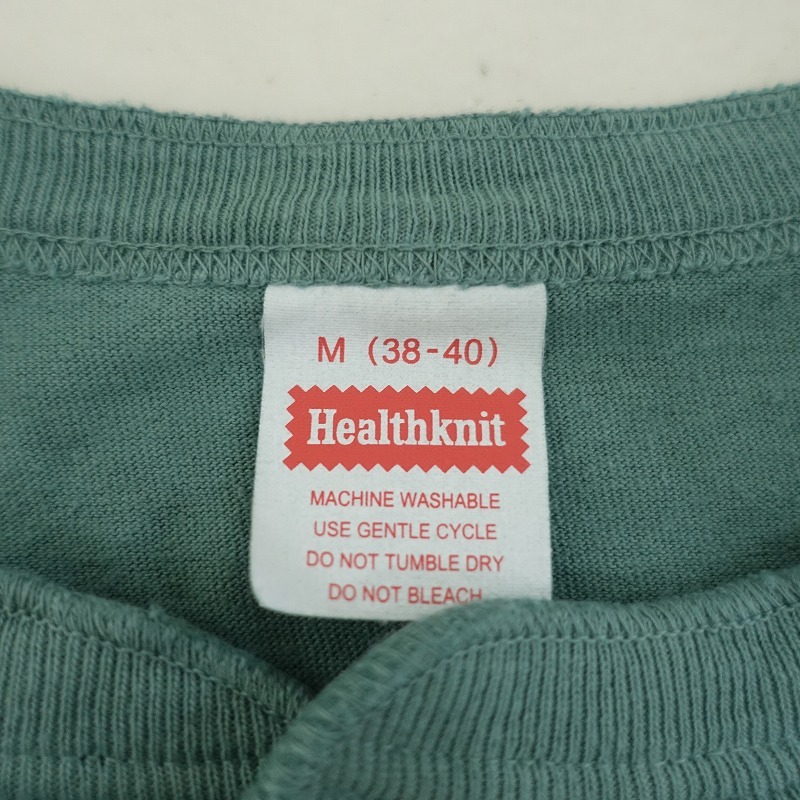 HealthknitのコットンヘンリーネックTシャツです。カラーはグリーンで、コットンの天竺地で仕立てられています。ハーフボタン付きのプルオーバータイプです。裾はロックミシン始末です。 |