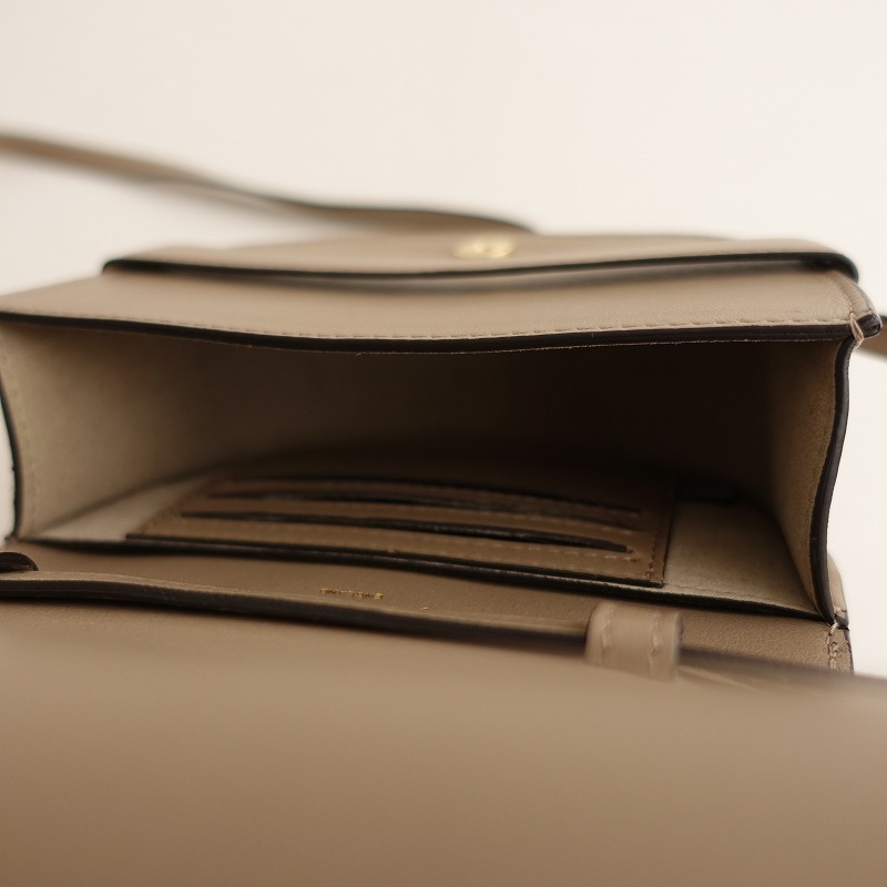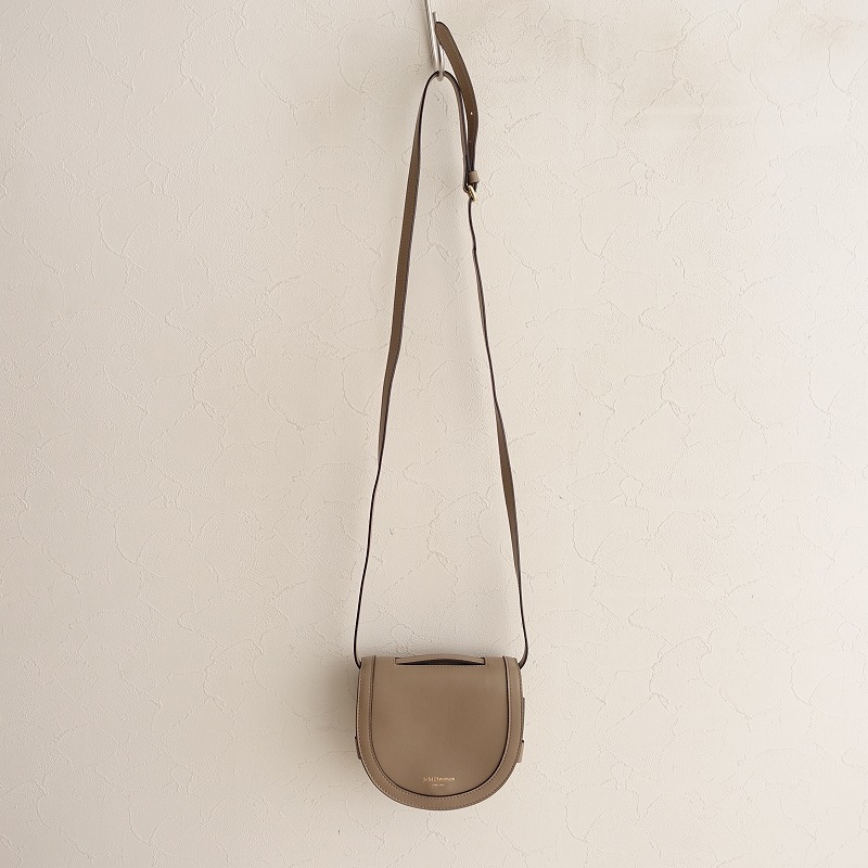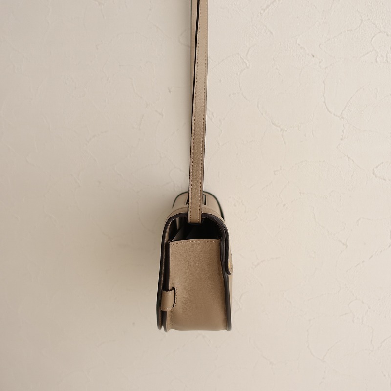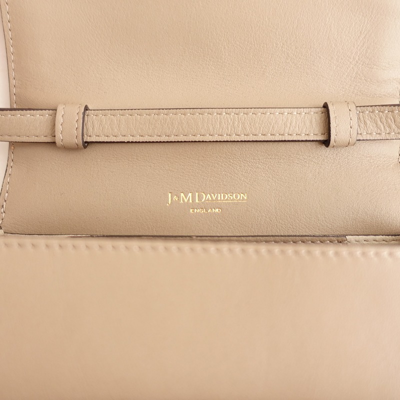 J&M DAVIDSONのARCA(S)です。カラーはグレーベージュで、開口はフラップ仕様でマグネットボタン留めです。内側にカードポケットが3個あり、ショルダーの長さ調節可能です。定価(メーカー希望小売価格)142,560円のお品物です。 |