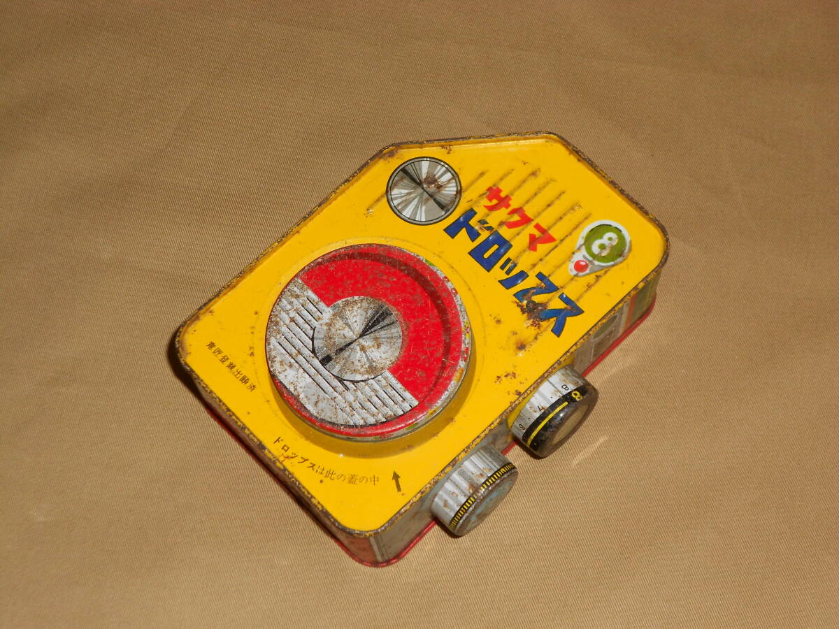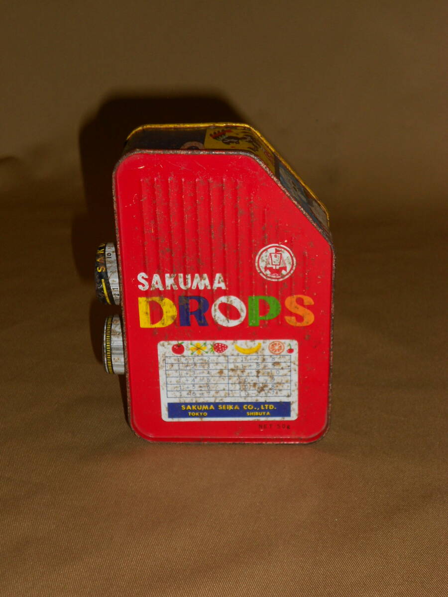 古いドロップ缶★サクマ・8ミリカメラ型・月光仮面・忍者・カウボーイ絵 佐久間 SAKUMA★