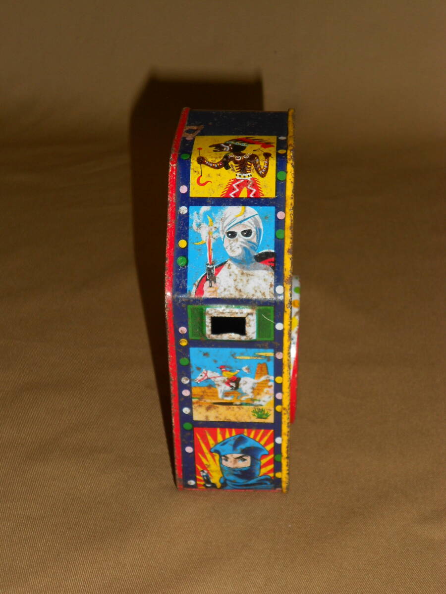 古いドロップ缶★サクマ・8ミリカメラ型・月光仮面・忍者・カウボーイ絵 佐久間 SAKUMA★