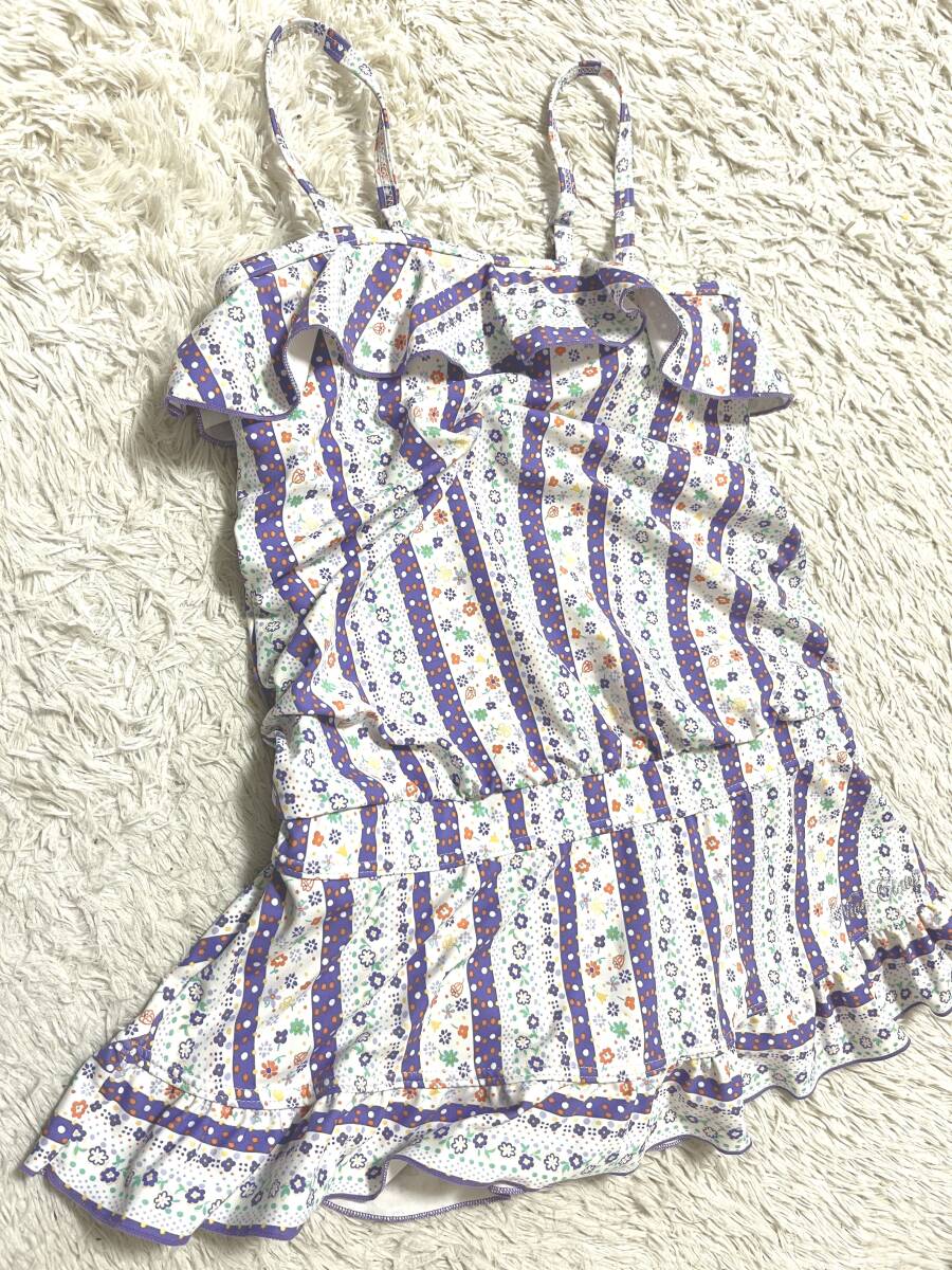 ●女の子水着 J-S(150)●ナイスクラップ【NICE CLAUP】グレイス◆サロペット風/水着パンツ一体ワンピース水着:ホワイト
