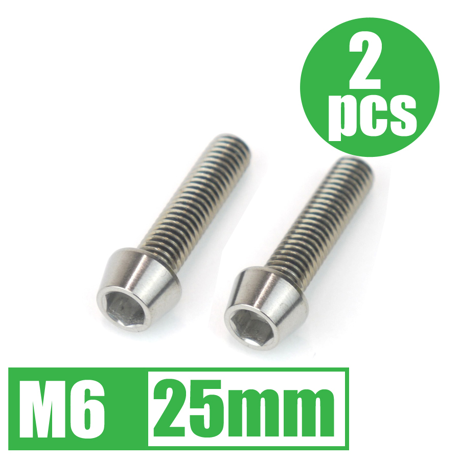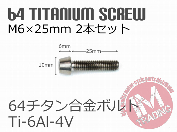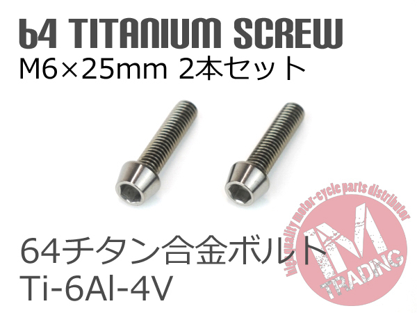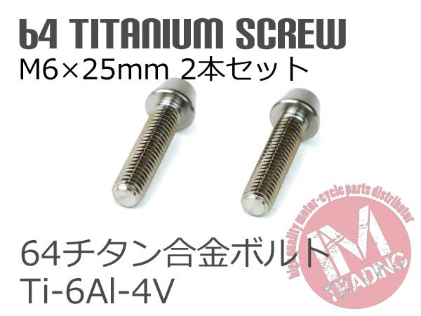64チタン合金ボルト M6×25mm P1.0 2本セット テーパーキャップ ゆうパケット対応 焼き色なし Ti-6Al-4V☆