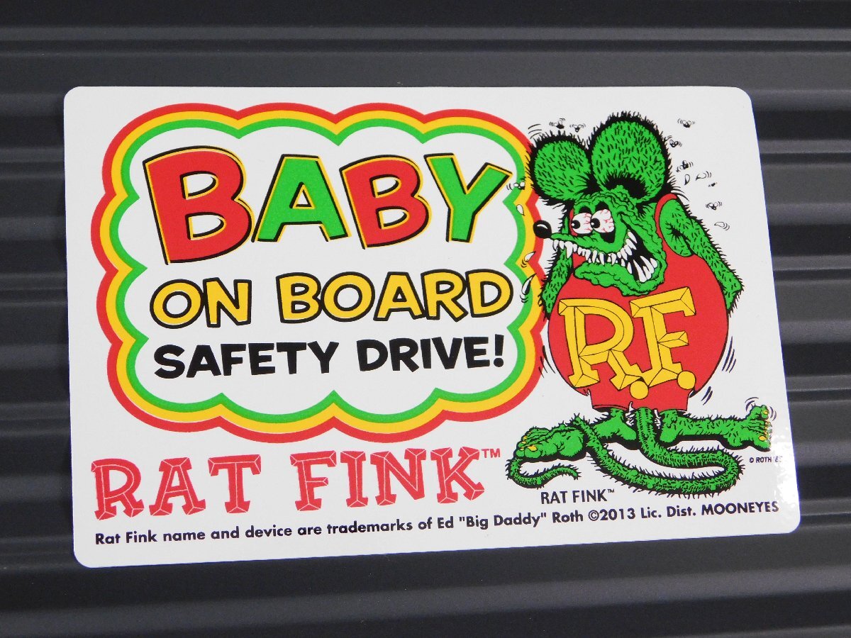車に赤ちゃんが乗っている事を知らせる、Rat Finkの「BABY ON BOARD」ステッカーです。