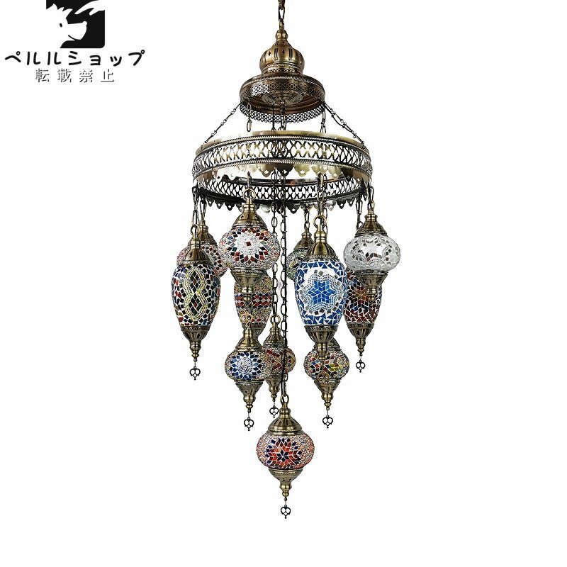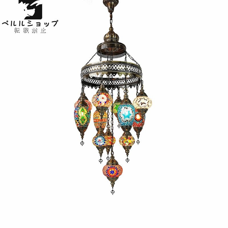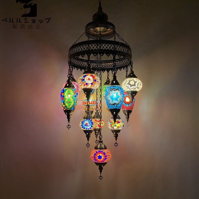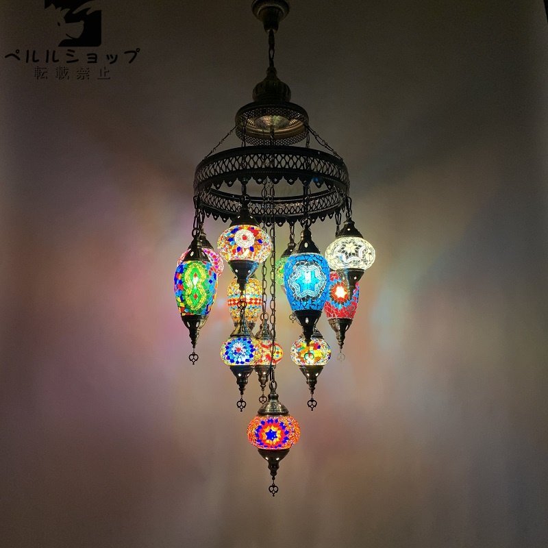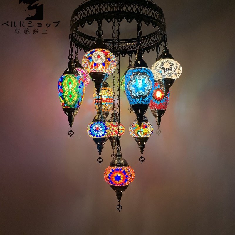 ボヘミア調 トルコ モロッコ風ペンダントライト 手作りモザイクステンドグラス アンティーク調 シャンデリア 天井照明